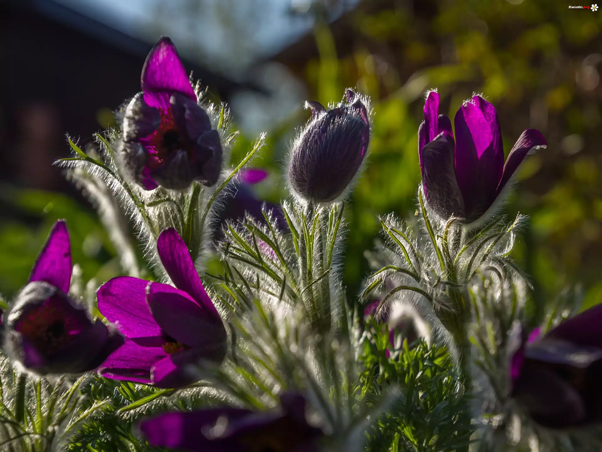 Rozkwitające, Kwiaty, Fioletowe, Sasanki, Zbliżenie - Zdjęcia