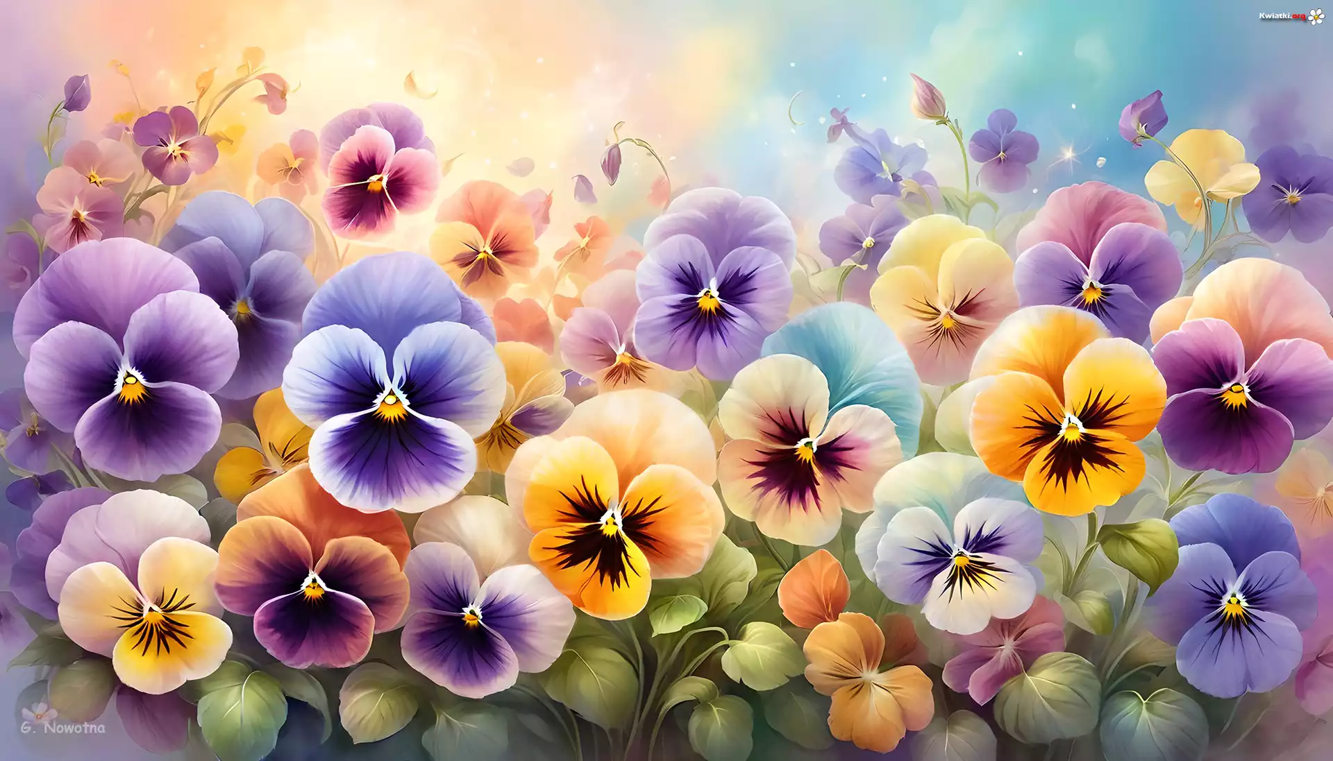 Kolorowe, Rozkwitnięte, Bratki, Kwiaty, Grafika - Zdjęcia