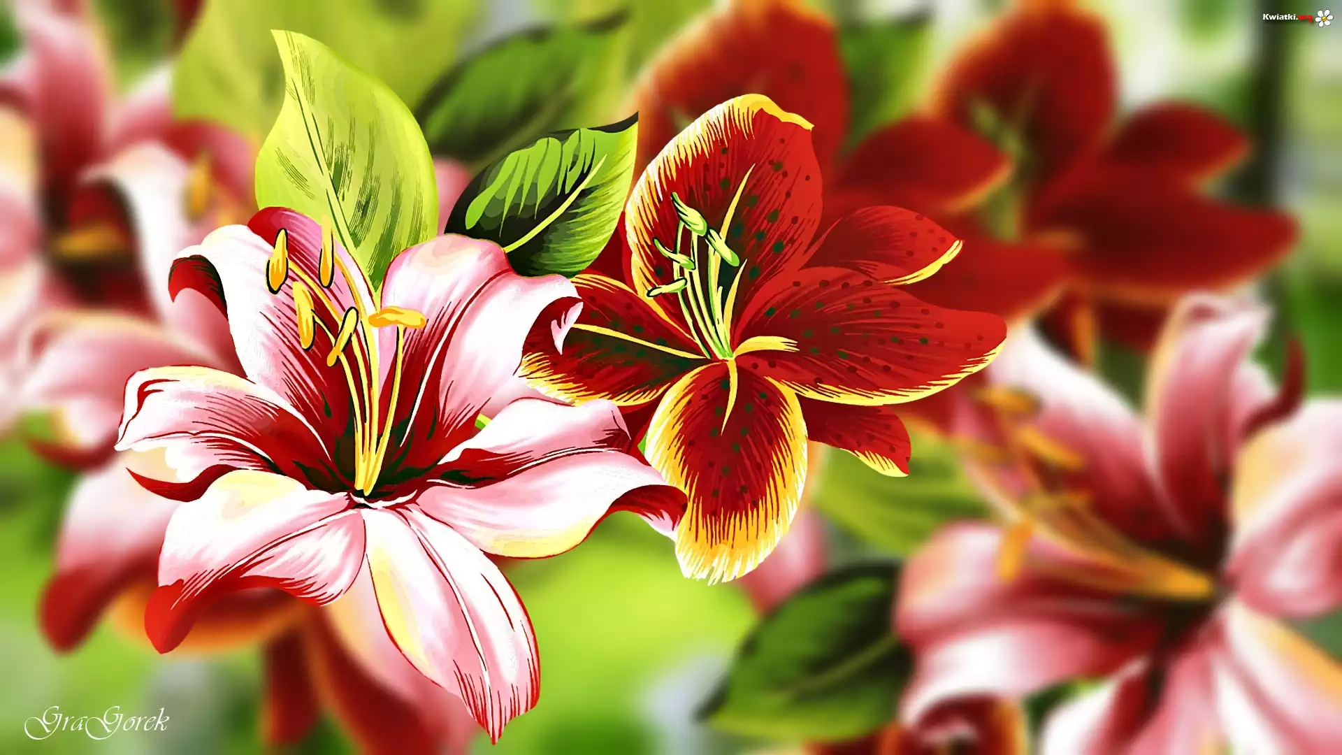 Kwiaty, Rozkwitnięte, Lilie, Grafika 2D - Zdjęcia