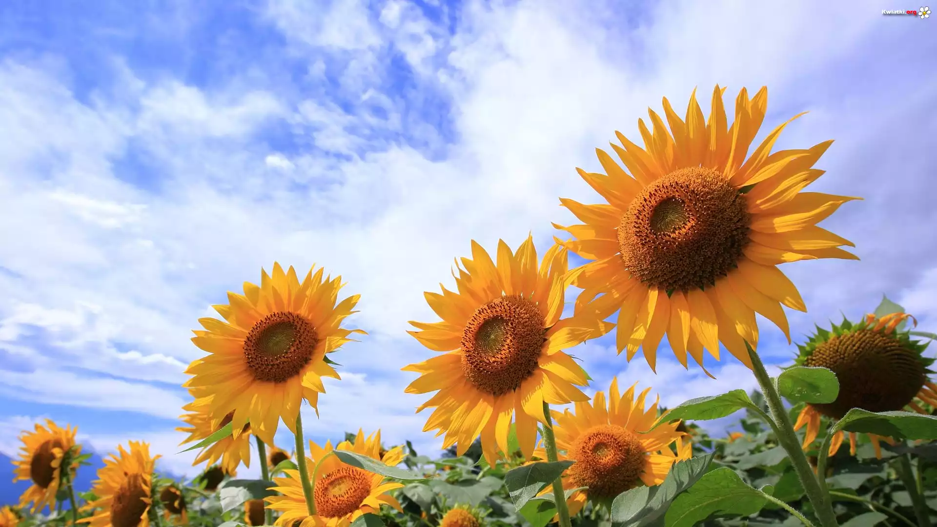 Rozkwitnięte, Słoneczniki, Niebo - Zdjęcia