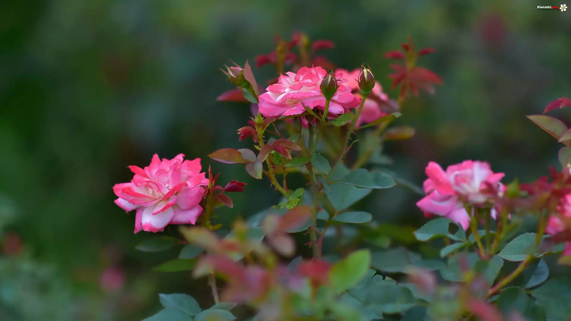 Rozkwitnięte, Różowe, Róże, Pąki, Krzew - Zdjęcia