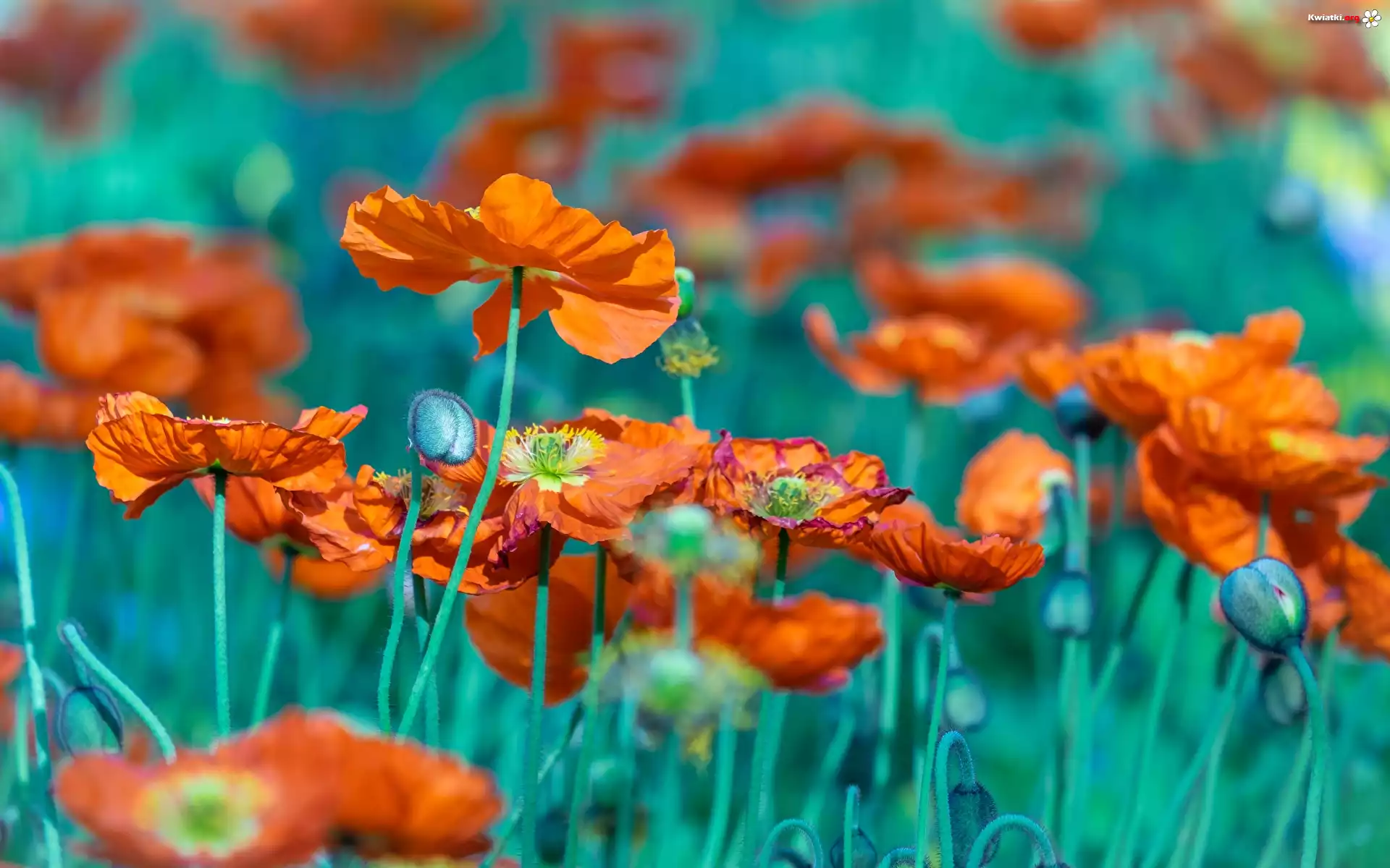 Pomarańczowe, Rozkwitnięte, Maki - Zdjęcia