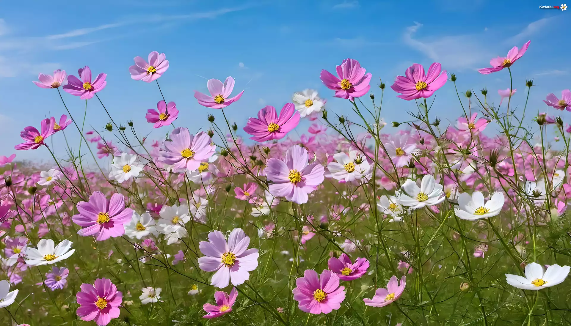 Kosmee, Rozkwitnięte, Różowe, Kwiaty, Grafika - Zdjęcia