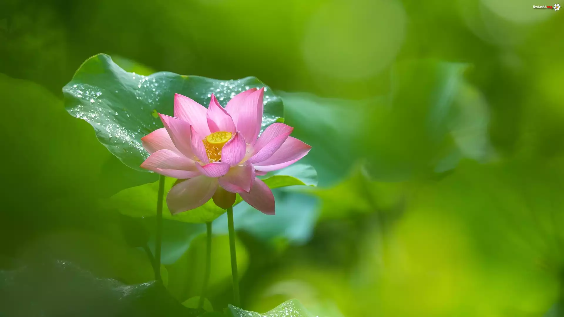 Kwiat lotosu, Liście, Rozmycie - Zdjęcia