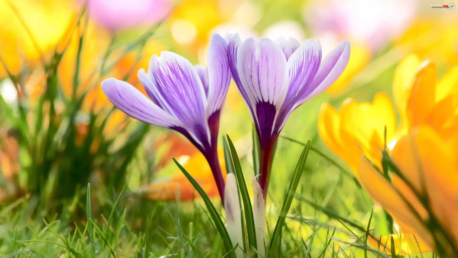 Kwiaty, Krokusy, Trawa, Rozmycie - Zdjęcia