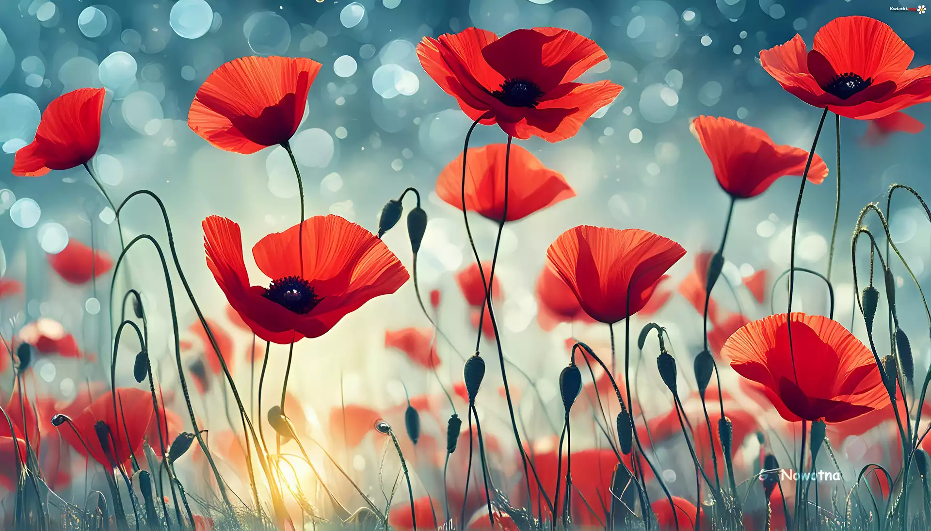 Czerwone, Maki, Kwiaty, Rozmyte, Tło, Grafika - Zdjęcia