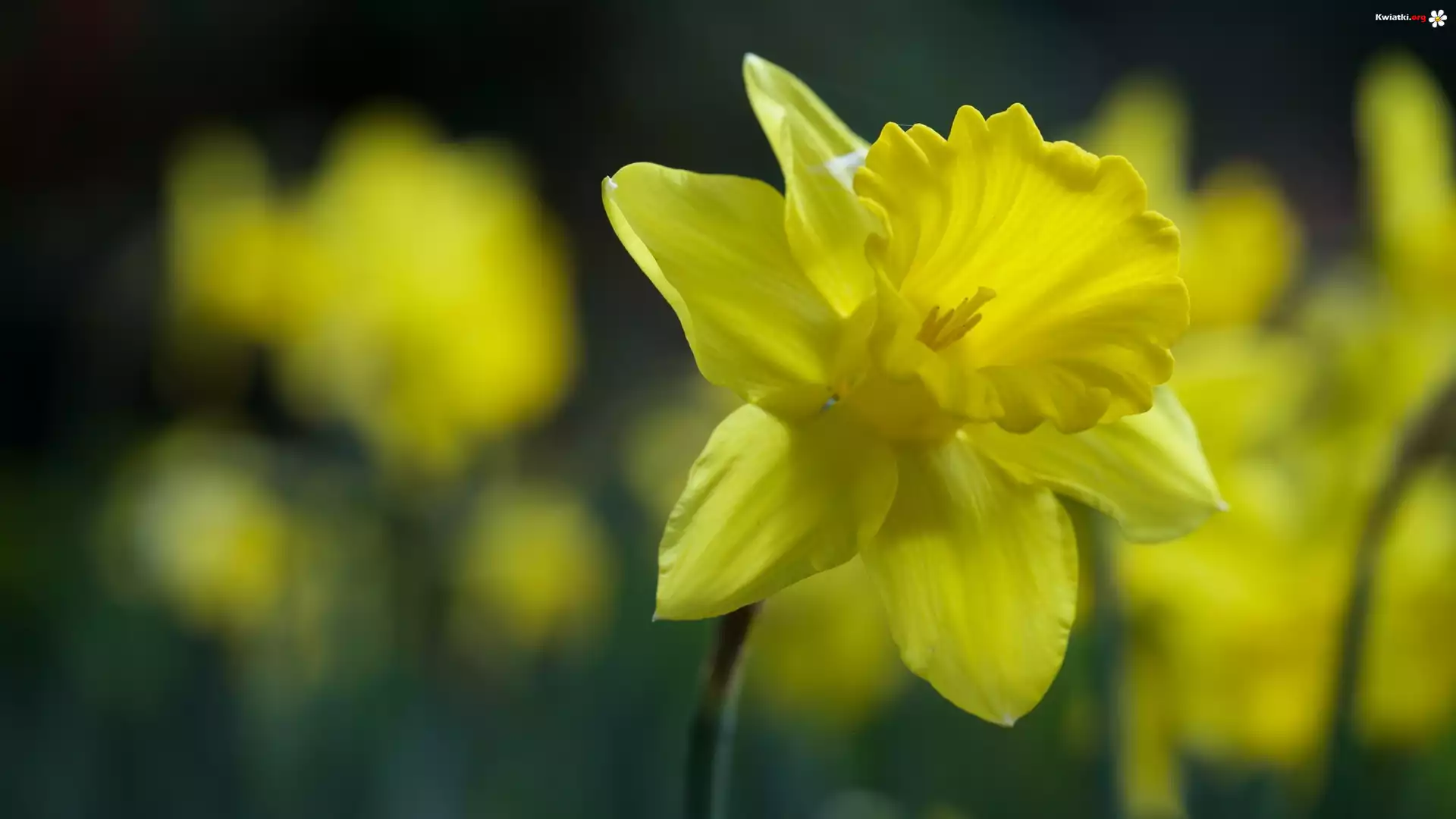 Żółty, Kwiat, Żonkil, Rozmyte tło - Zdjęcia