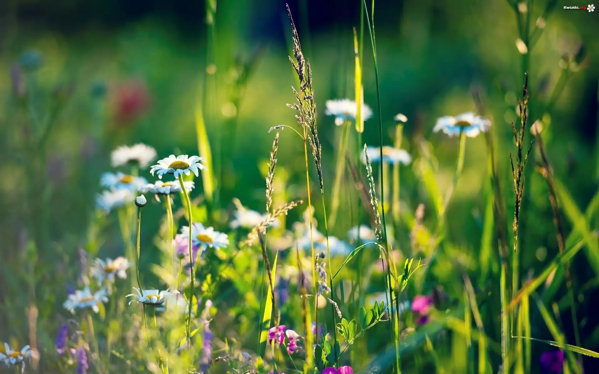 Kwiat Łąka, Rumianki, Trawa, Rozmyte Tło