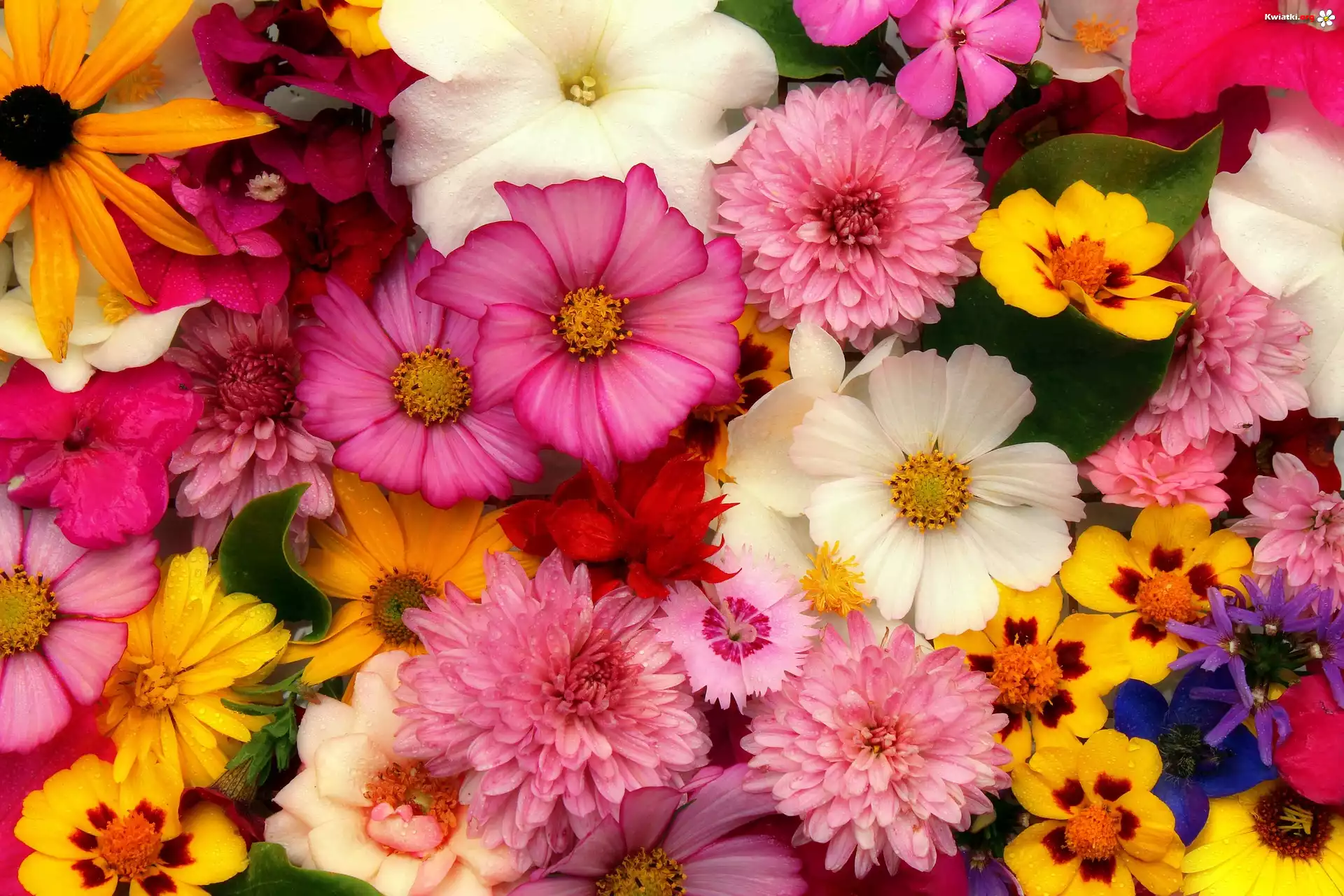 Kwiaty, Różnokolorowe, Krople - Zdjęcia