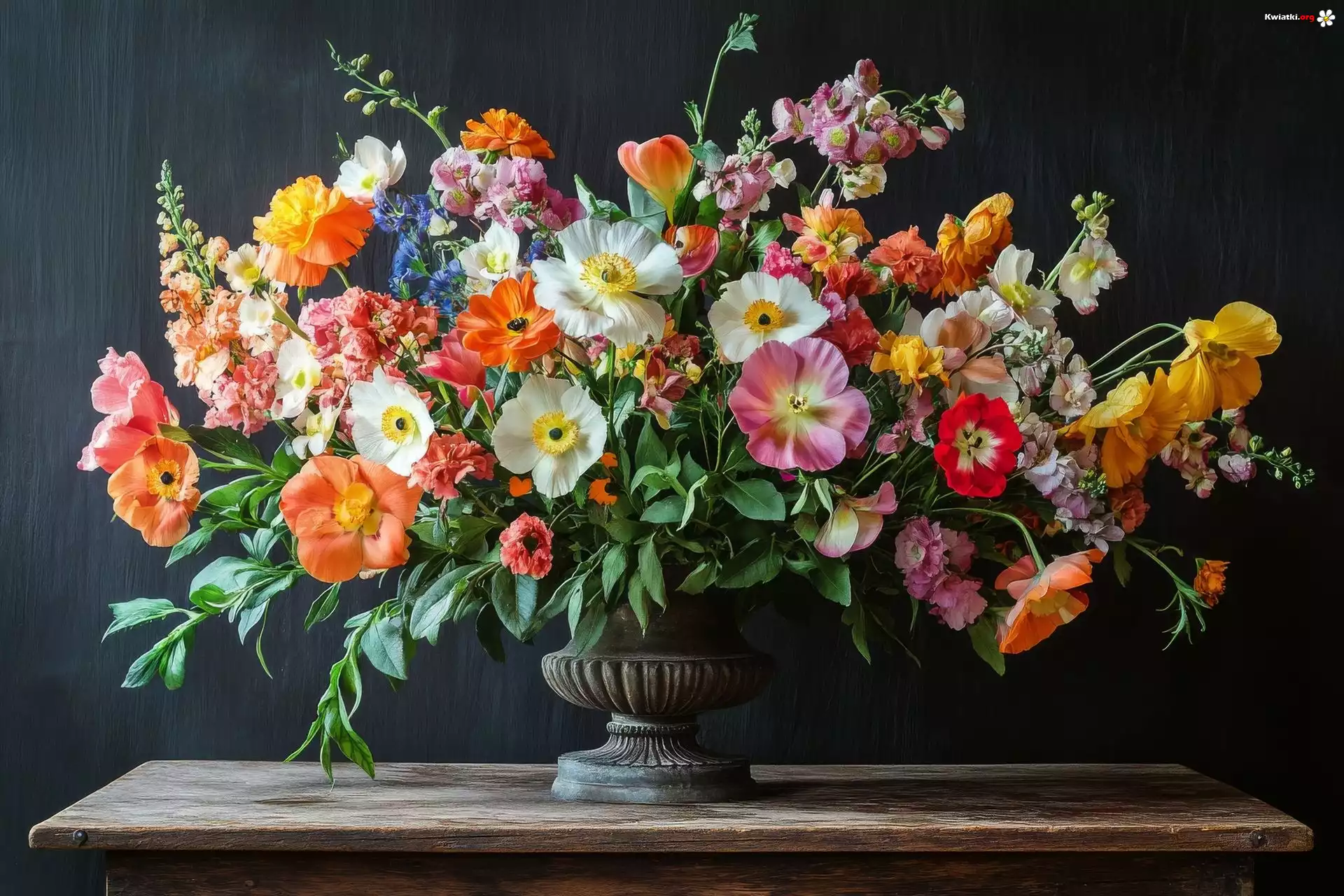 Kwiaty, Różnokolorowe, Waza, Stół, Bukiet - Zdjęcia