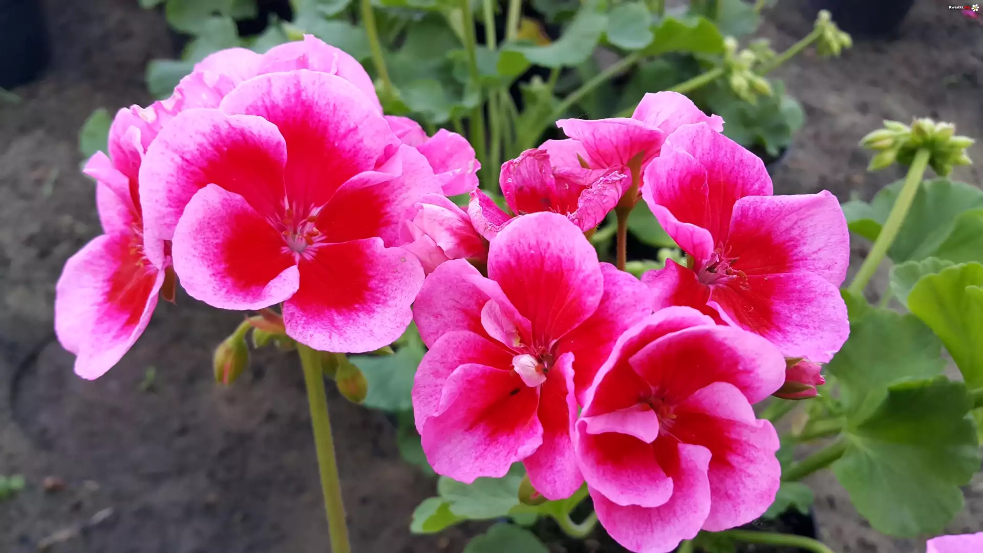 Czerwono, Różowa, Pelargonia - Zdjęcia