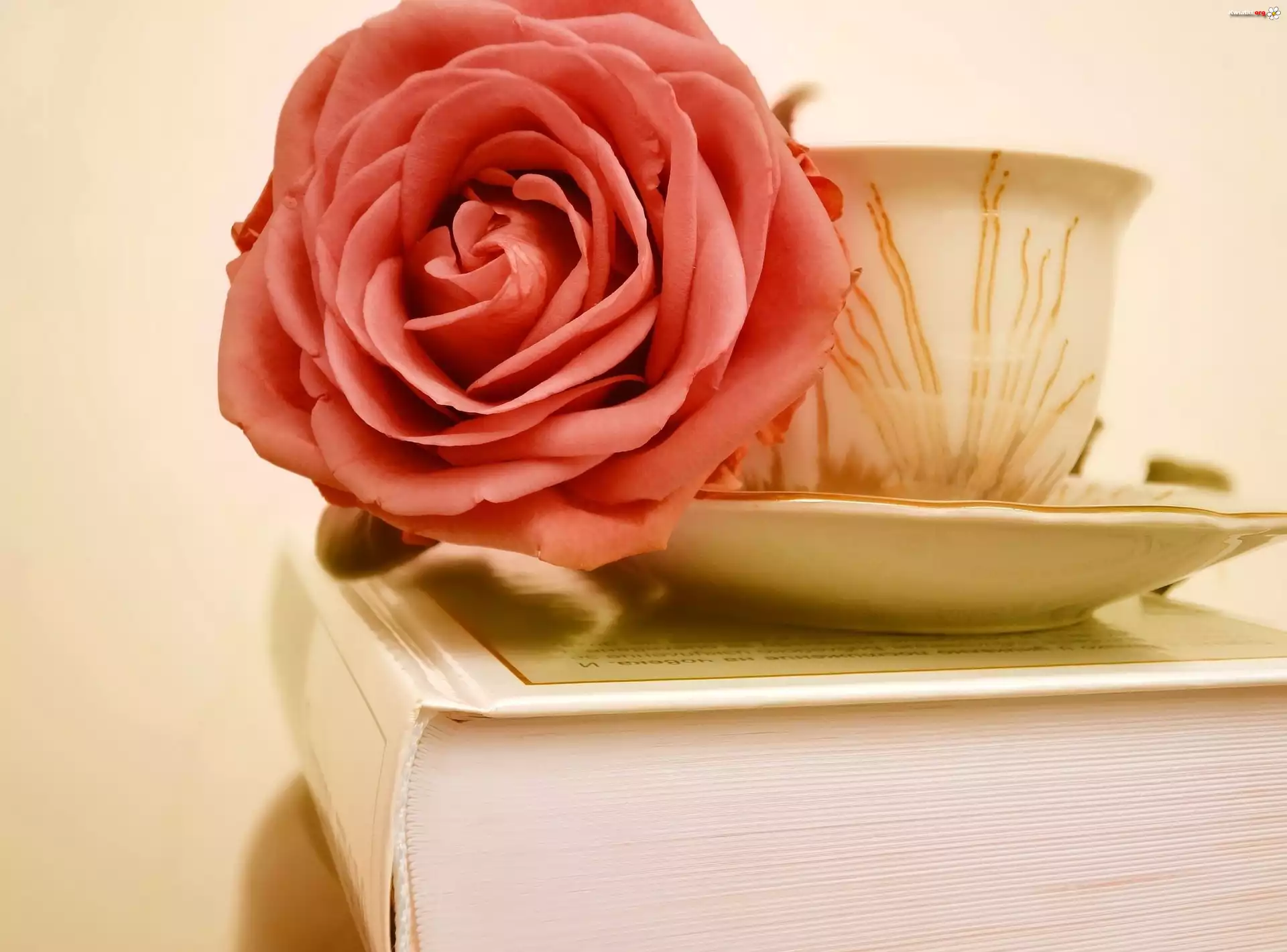 Kwiat Różowa, Róża, Filiżanka, Książka