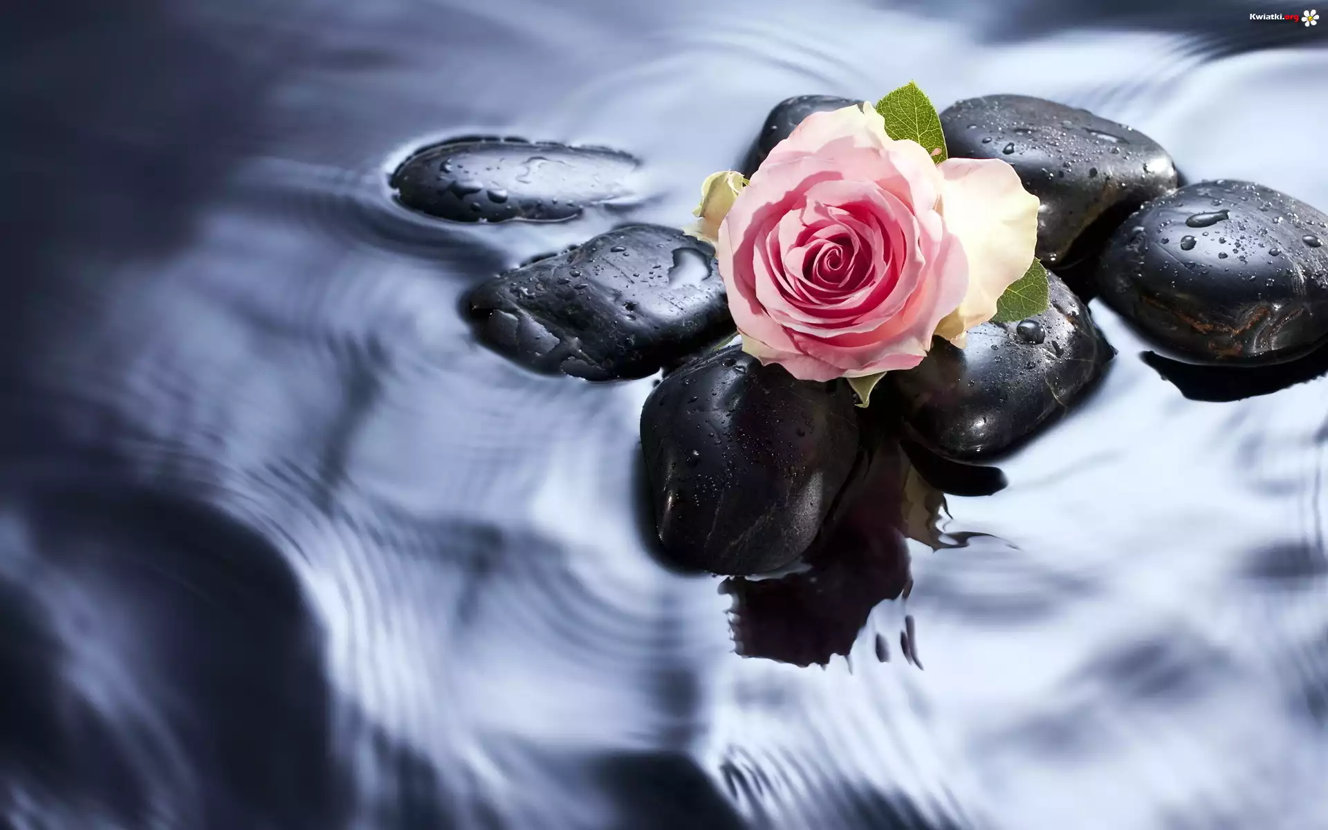 Kwiat Różowa, Róża, Kamienie, Woda