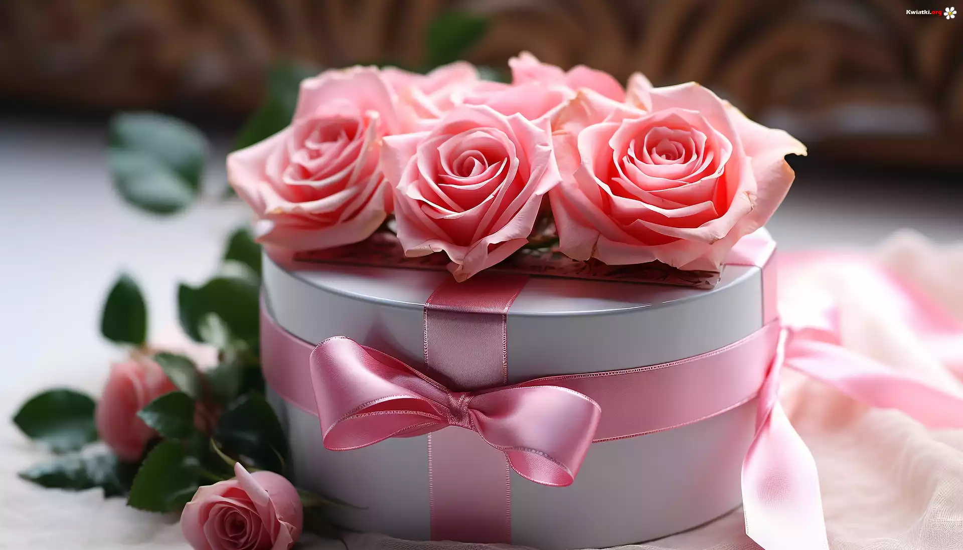 Kwiat Kwiaty, Róże, Pudełko, Różowa, Wstążka, Kokarda