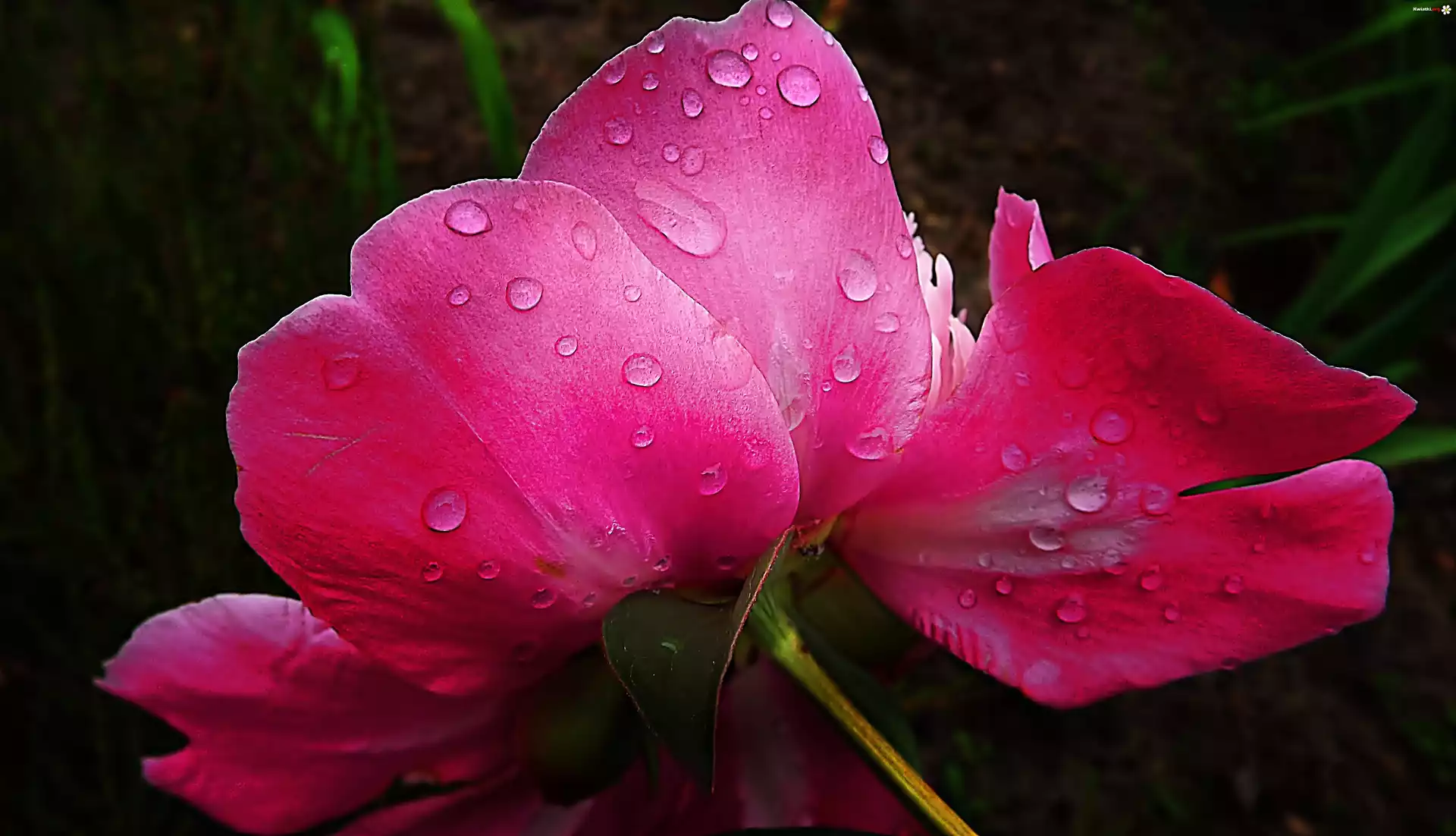 Kwiat Różowa, Piwonia, Krople, Wody