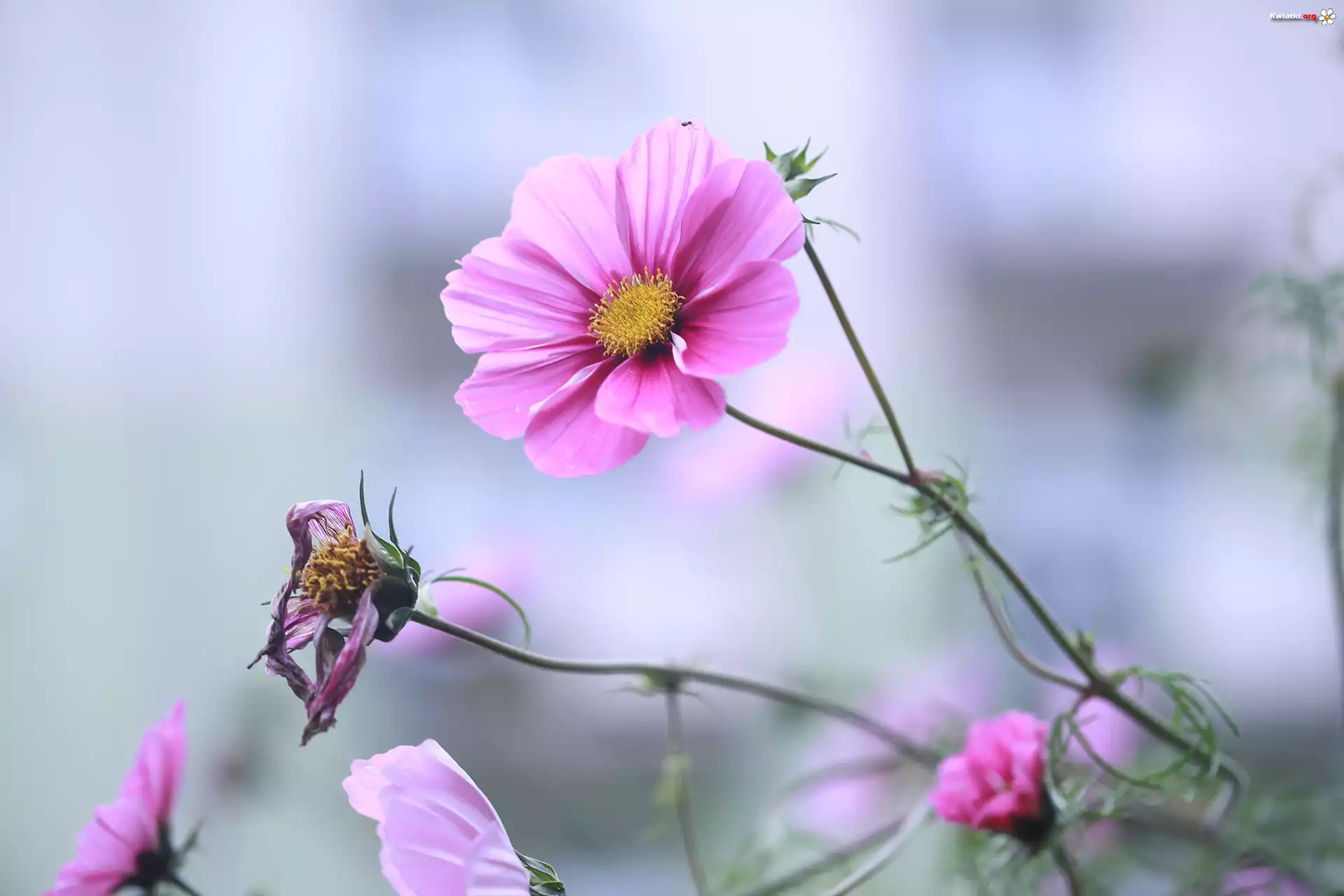 Różowa, Kosmea, Kwiaty, Zbliżenie - Zdjęcia
