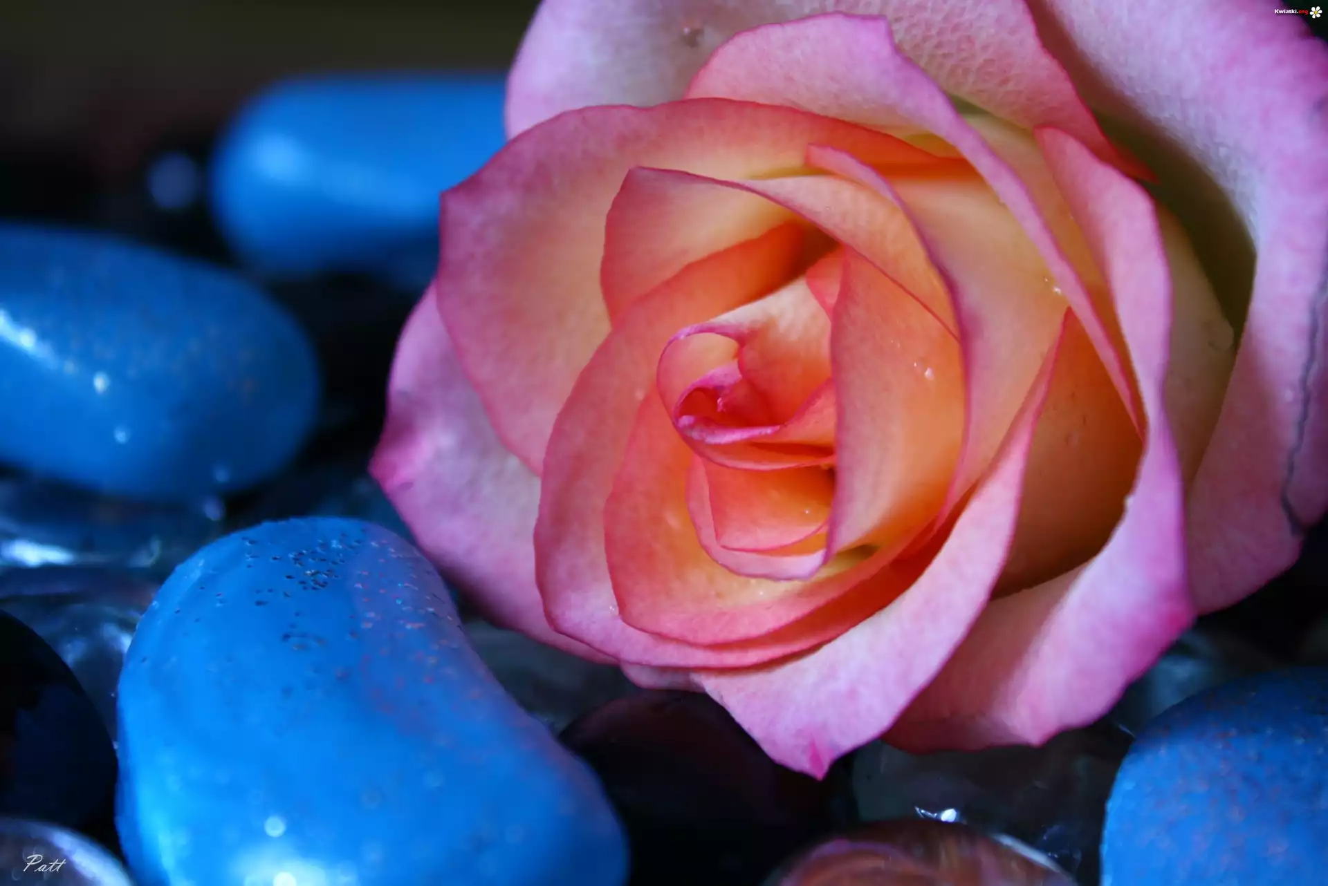 Kwiat Różowa, Róża, Niebieskie, Kamienie