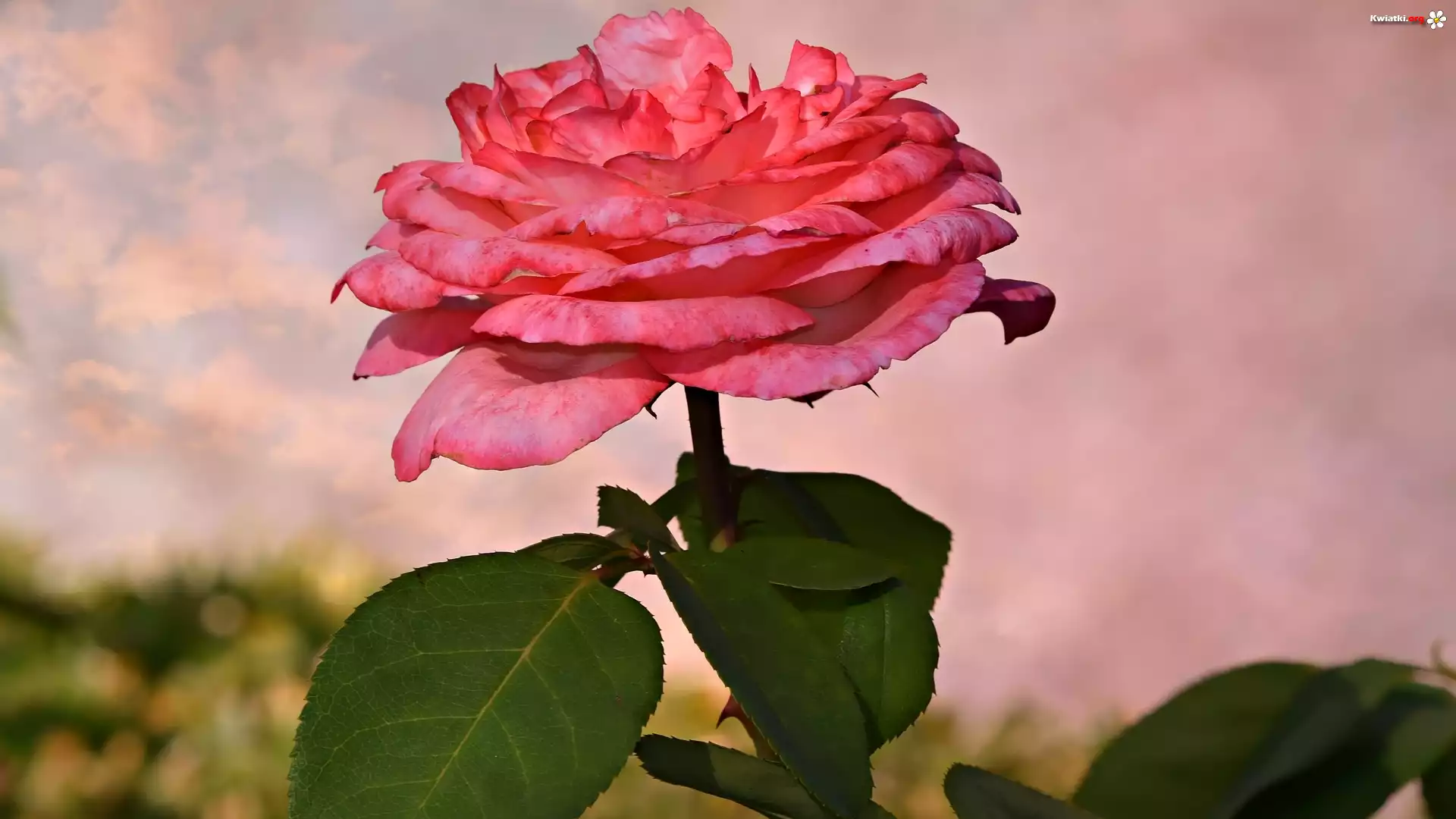 Kwiat Różowa, Rozwinięta, Róża, Listki