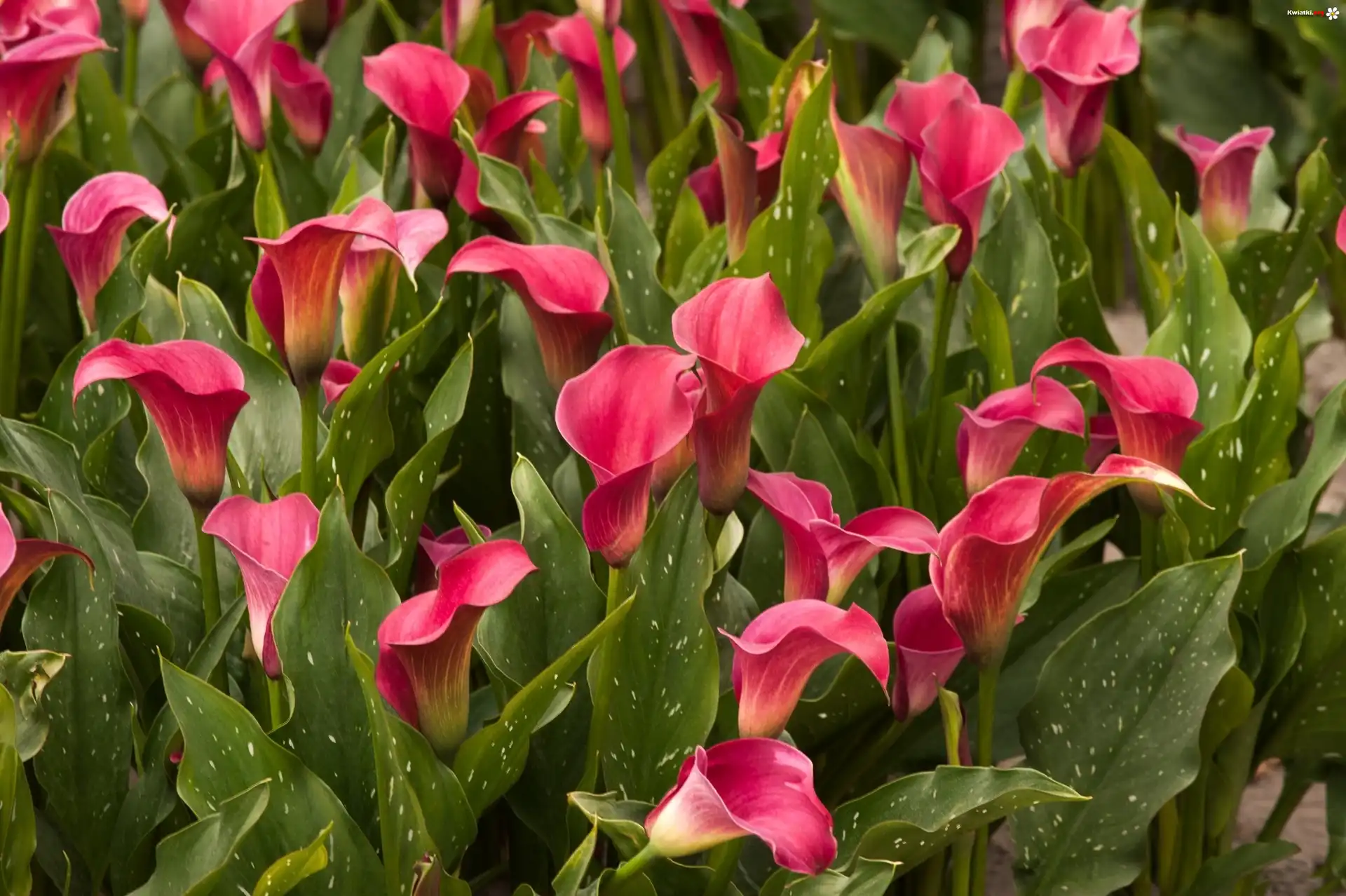 Różowa, Kalia, Zielone, Liście - Zdjęcia