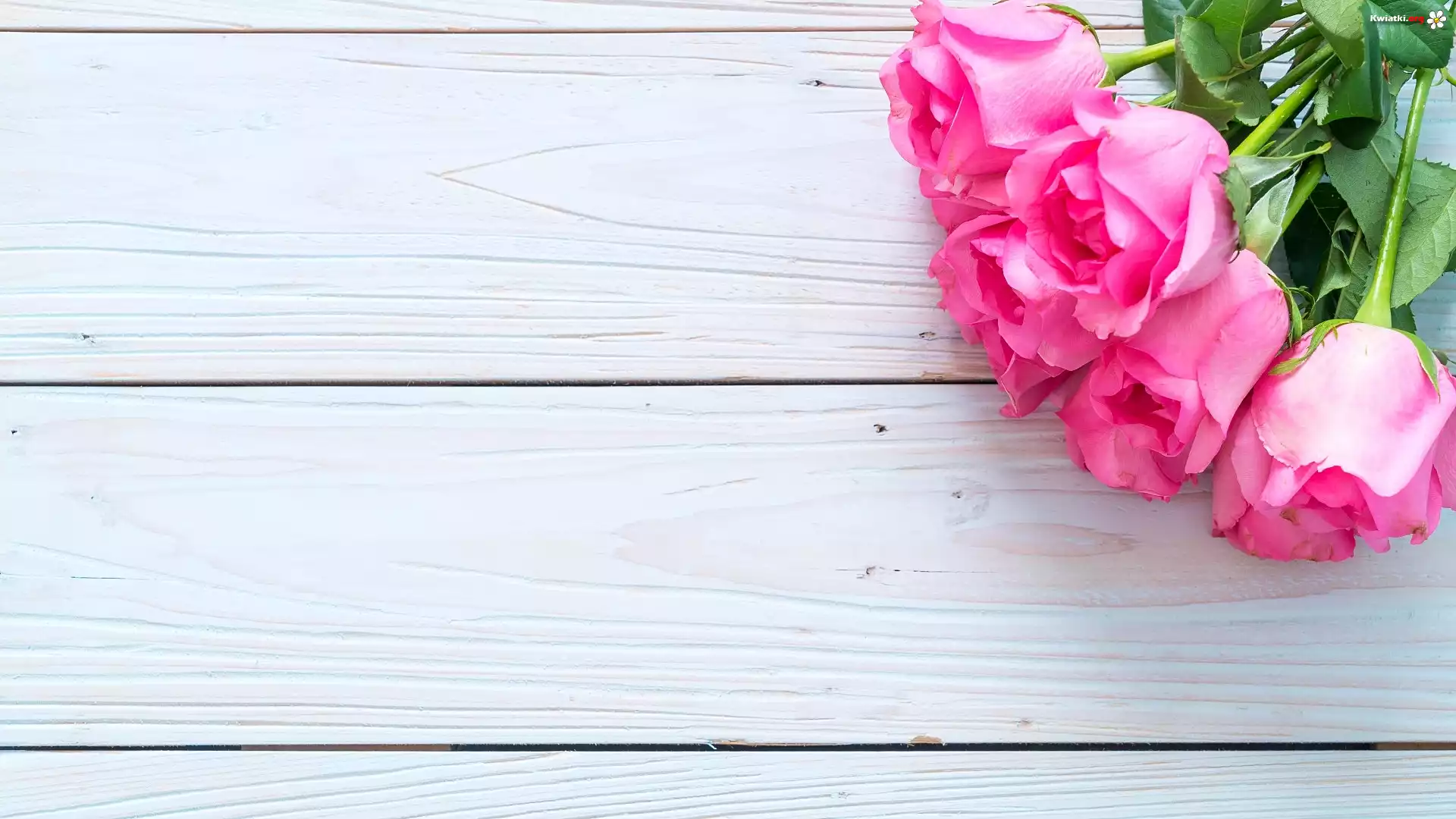 Kwiat Różowe, Róże, Listki, Białe, Deski