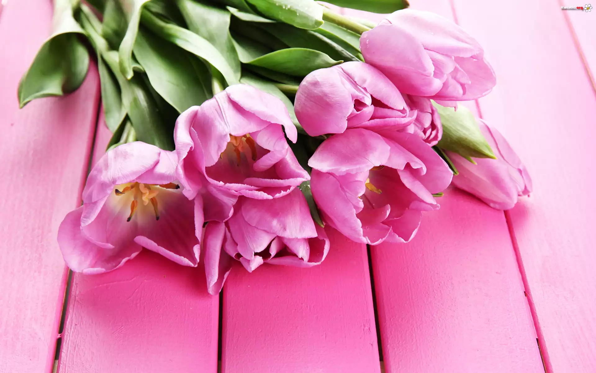 Tulipany, Różowe, Bukiet, Różowe, Deski - Zdjęcia