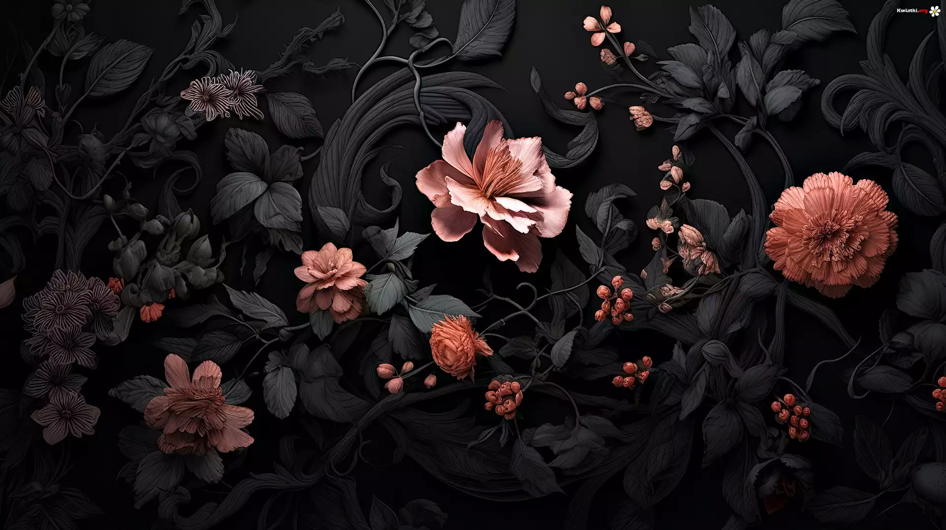 Kwiaty, Różowe, Czarne, Liście, Grafika - Zdjęcia
