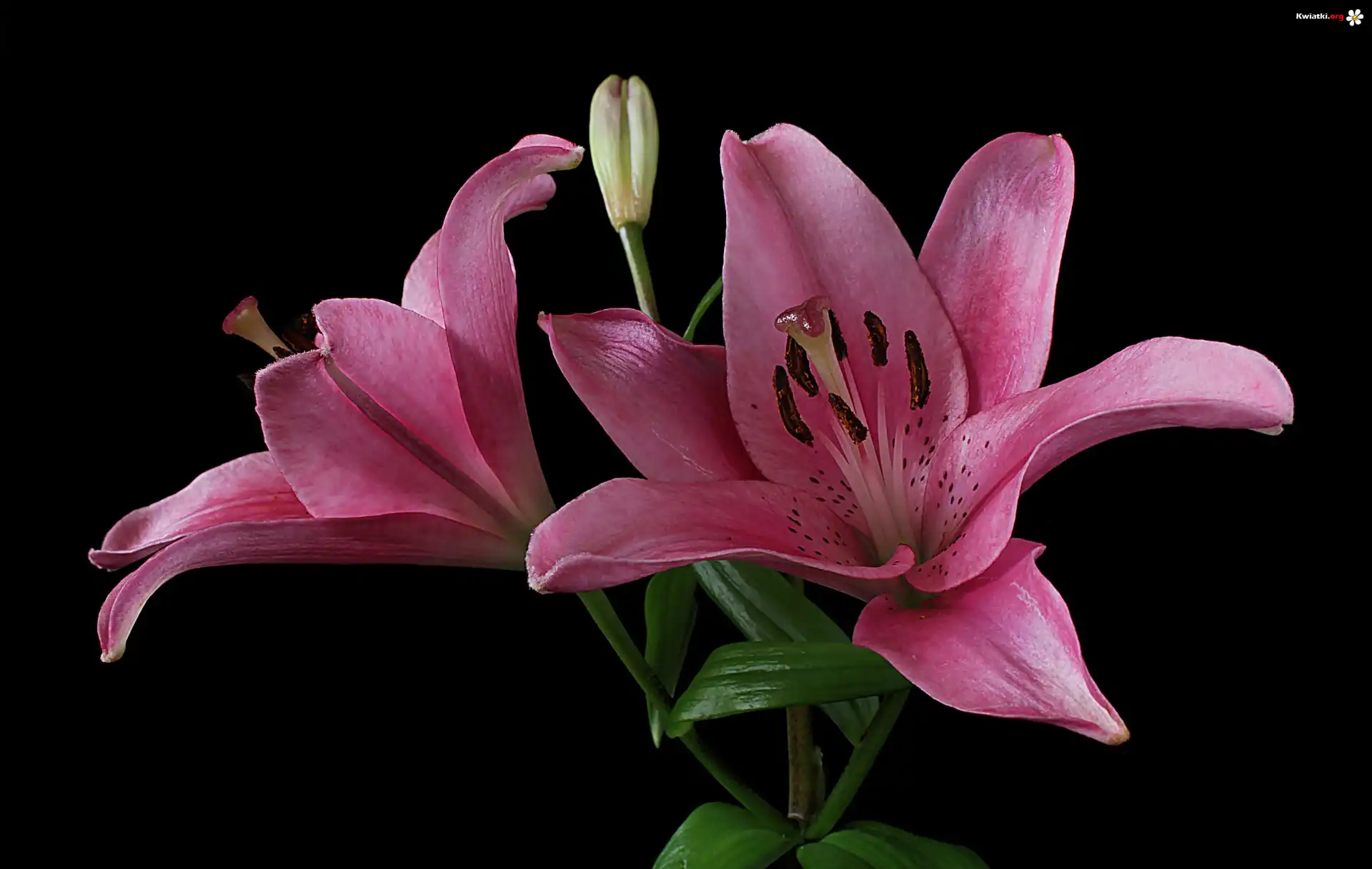 Kwiat Różowe, Lilie, Pąk, Czarne tło