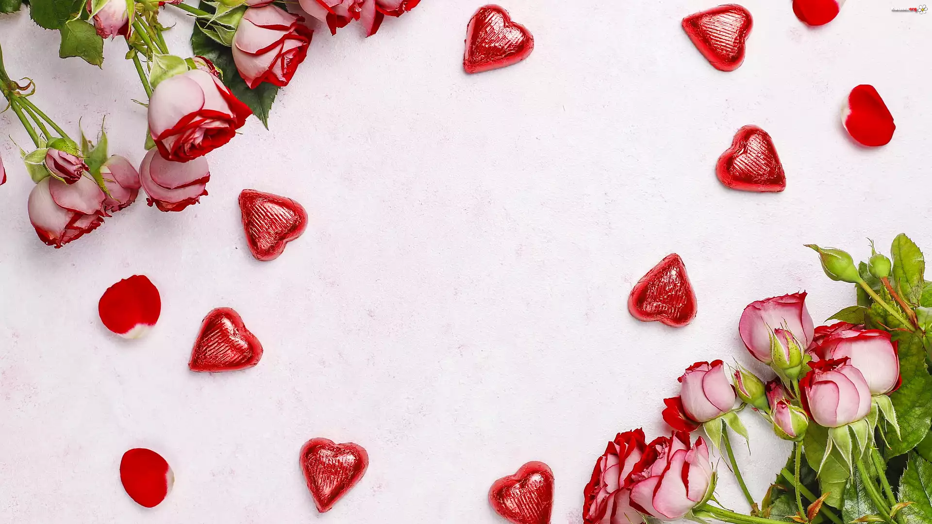 Kwiat Czerwono-różowe, Róże, Pąki, Pralinki, Serduszka, Walentynki