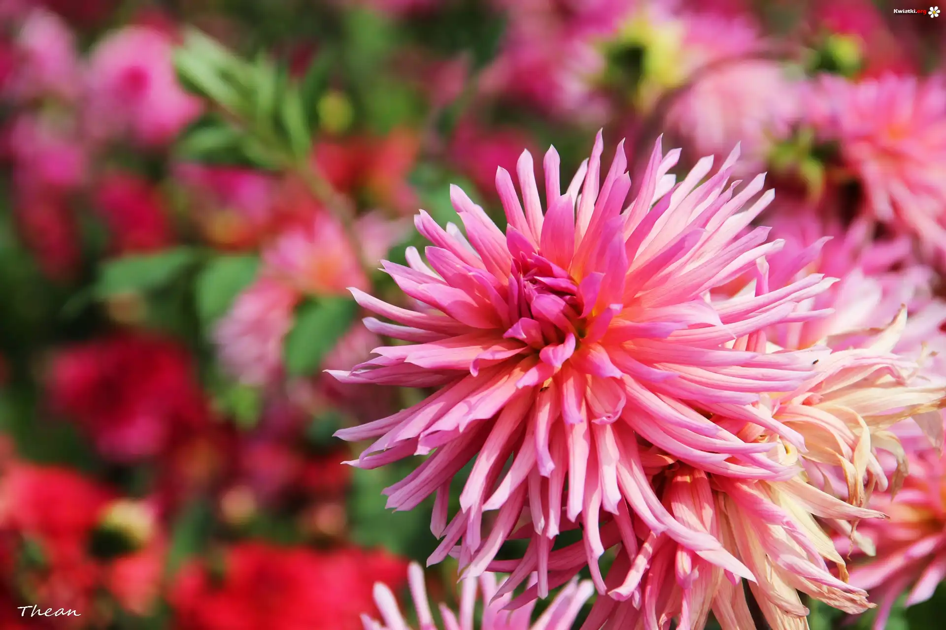 Różowe, Dalie, Ogród Dalia, Wazon Dalia Fioletowo, Białe, Dalie, Wazon Dalia, Pąki Kwiat, Dalia Dalie Różne, Kolory, Kwiatków Kwiat, Dalii Dalia, Pąk, Zieleń Biało Czerwony, Kwiat, Liście Kwiatek, Dalia, Ogrodowa Trzmiel, Na, Żółtej, Dalii Dalia, Różowa