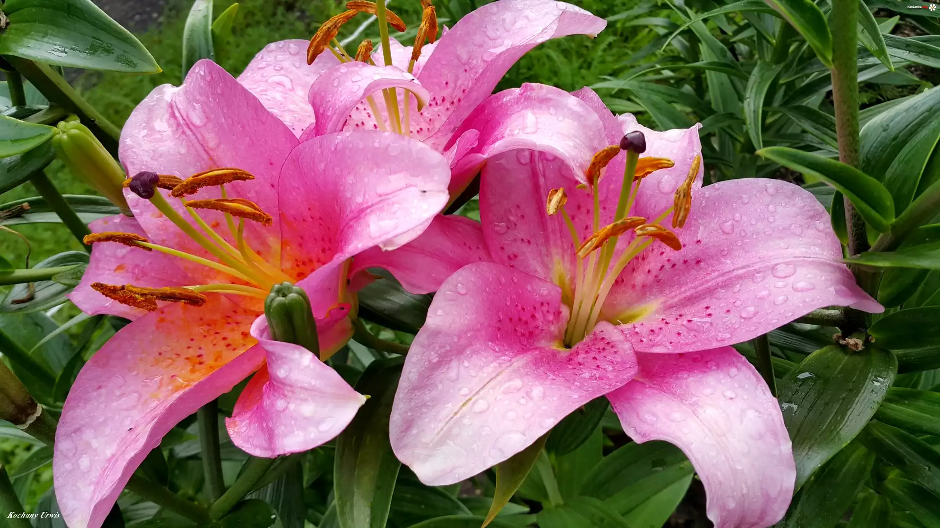 Różowe, Lilie, Krople, Deszczu, Pąki - Zdjęcia
