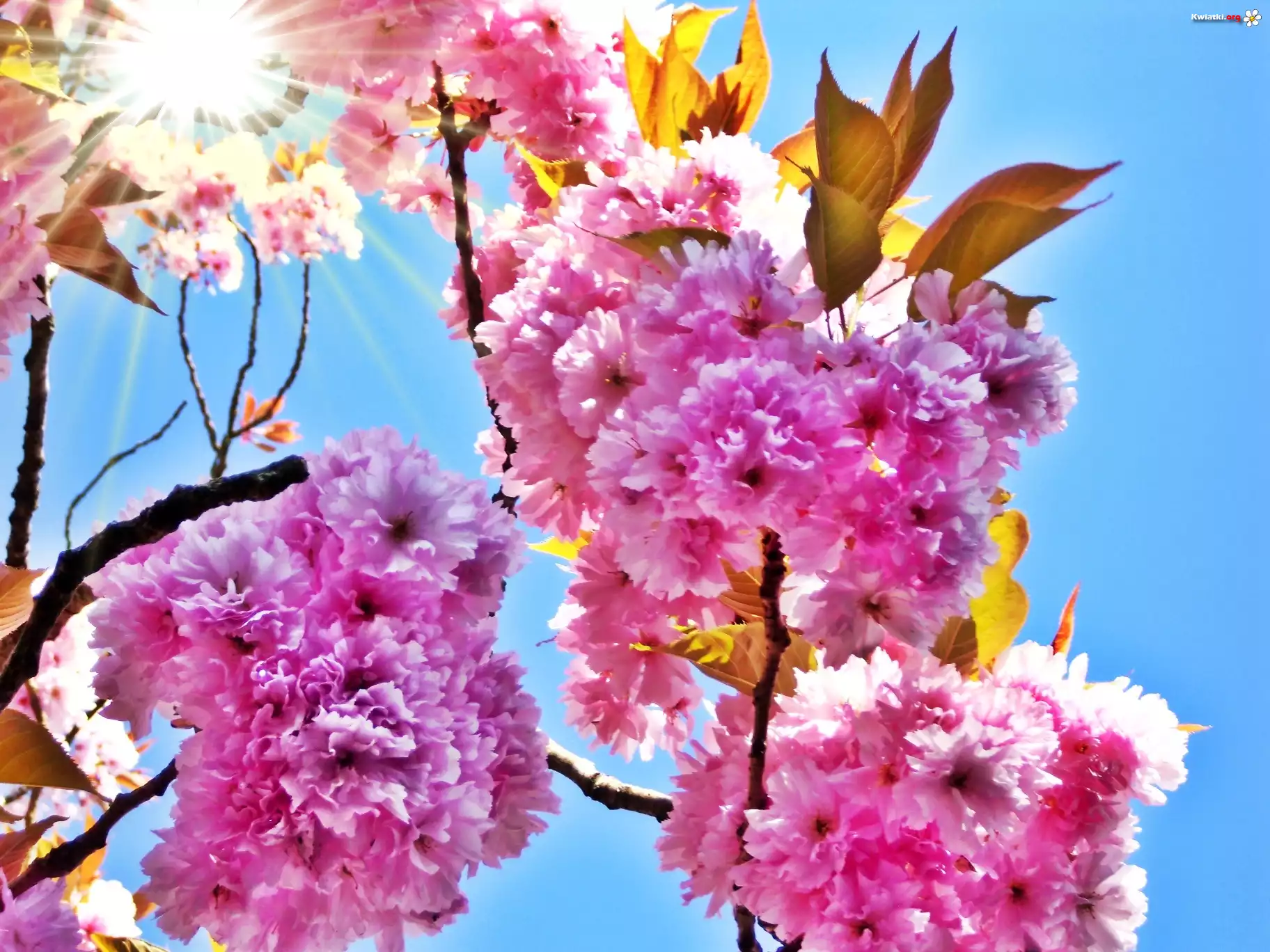 Różowe, Kwiaty, Drzewo, Słońce - Zdjęcia