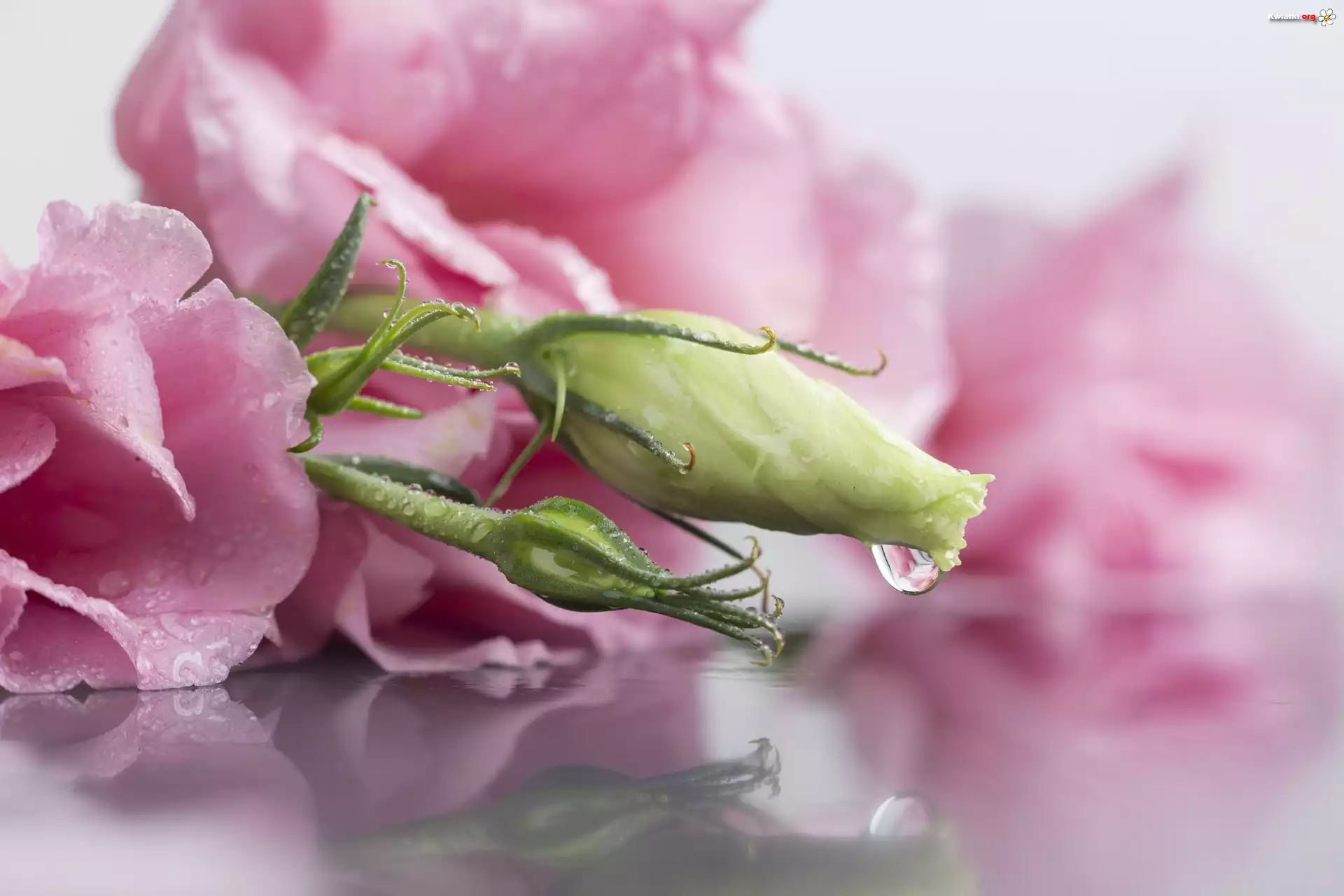 Kwiat Różowe, Kwiaty, Pąki, Eustoma, Kropla