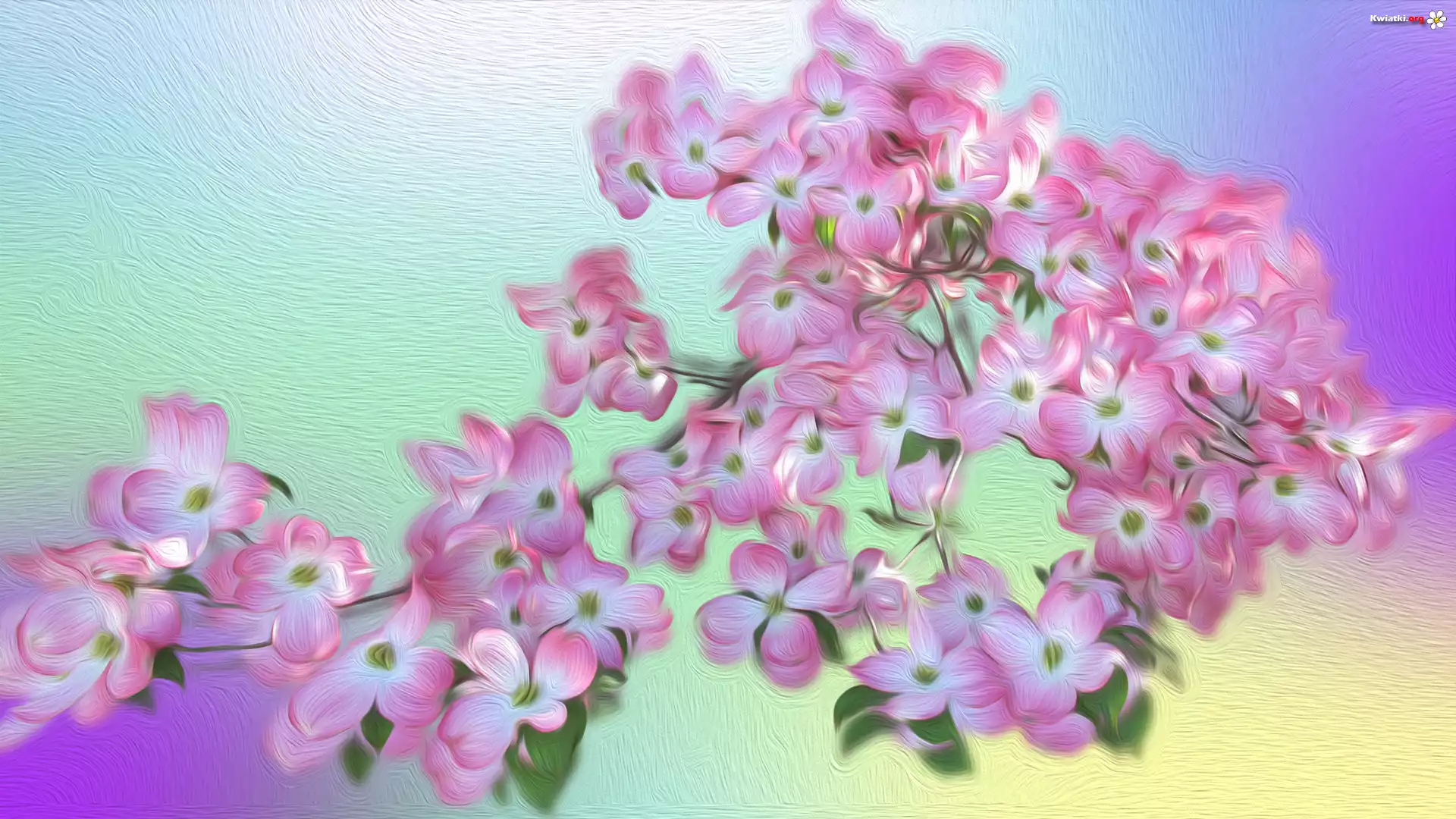 Różowe, Kwiaty, Gałązka, Grafika - Zdjęcia