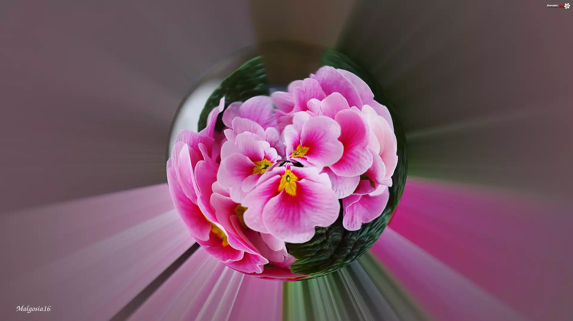 Różowe, Pierwiosnki, Kula, 2D, Grafika Komputerowa - Zdjęcia