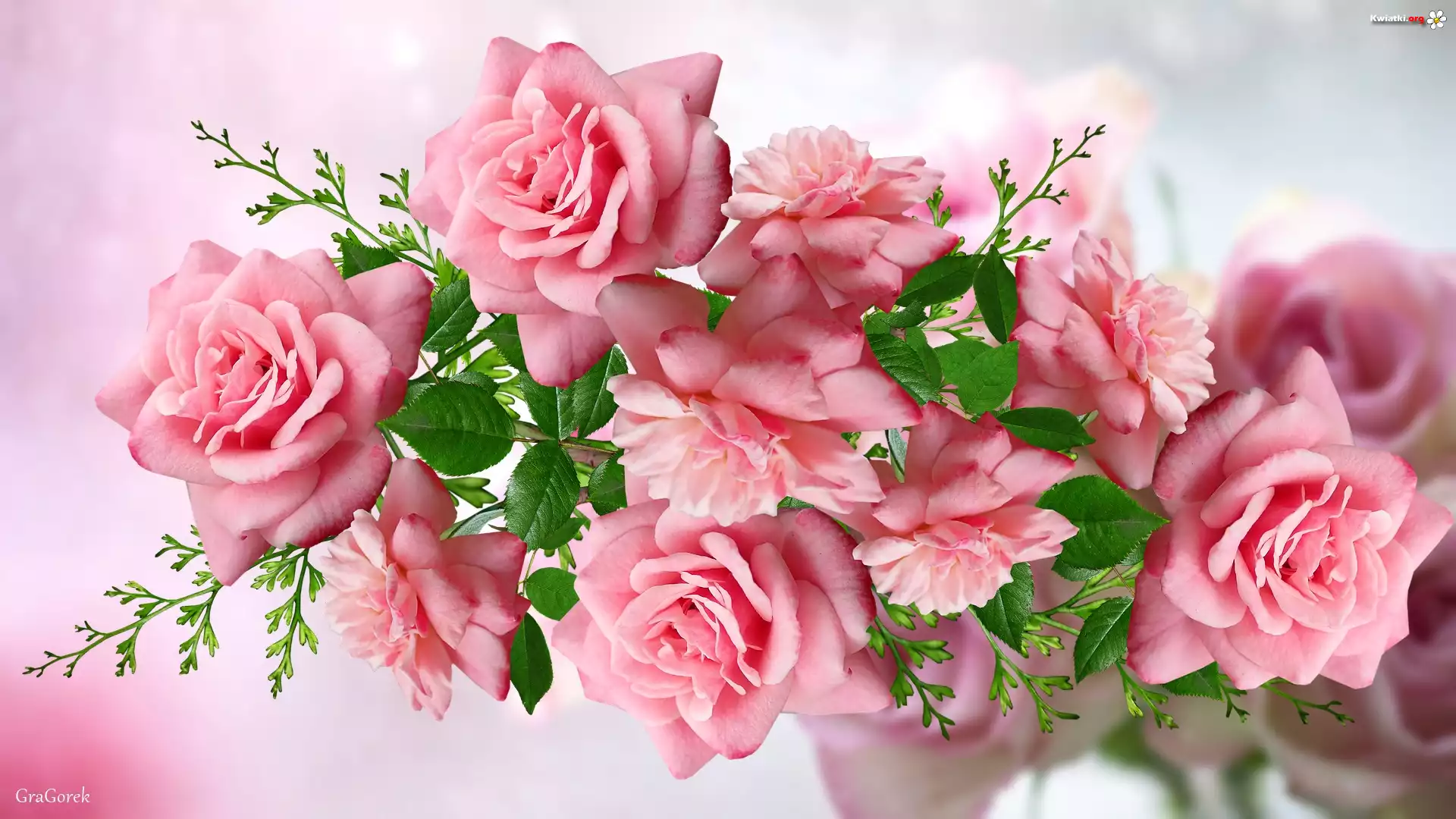 Różowe, Róże, Kwiaty, Grafika 2D - Zdjęcia