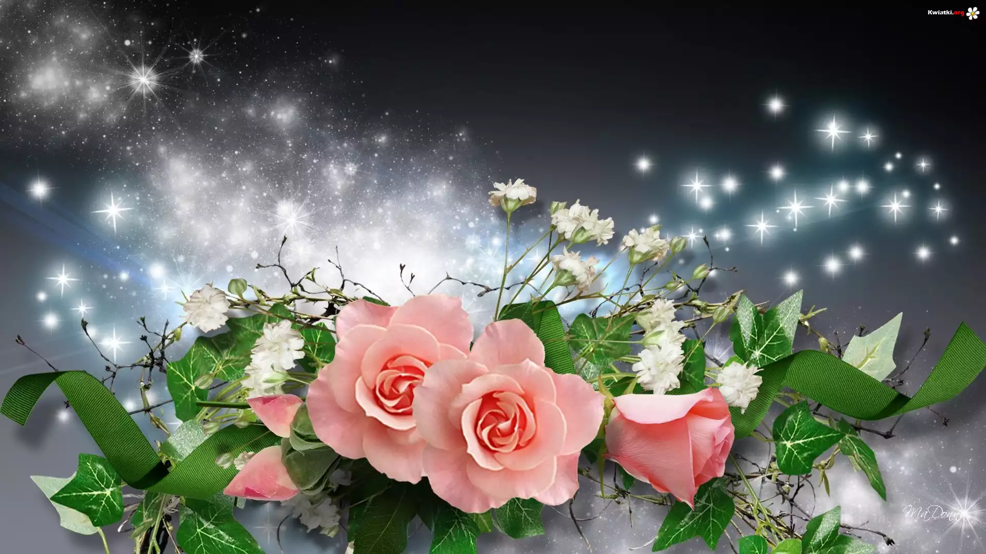 Różowe, Róże, Refleksy, Światła, Grafika, Komputerowa - Zdjęcia