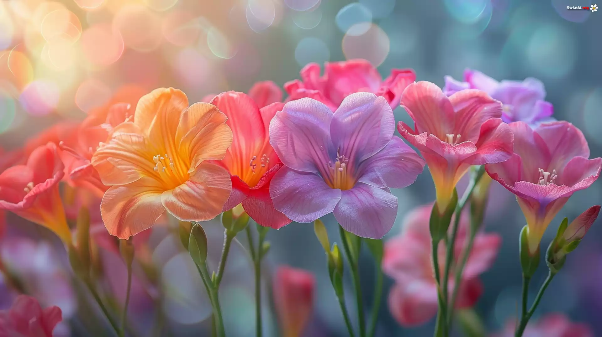 Kolorowe, Kwiaty, Żółte, Różowe, Fioletowe, Grafika - Zdjęcia