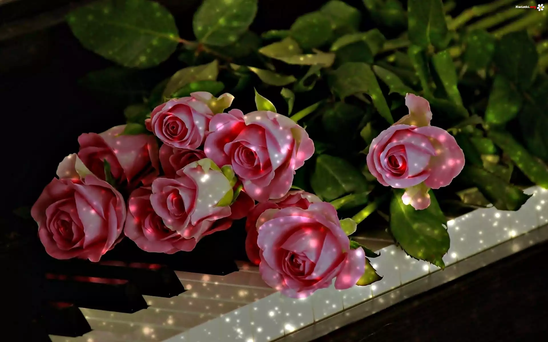 Kwiat Różowe, Róże, Fortepian, Klawisze, Cień
