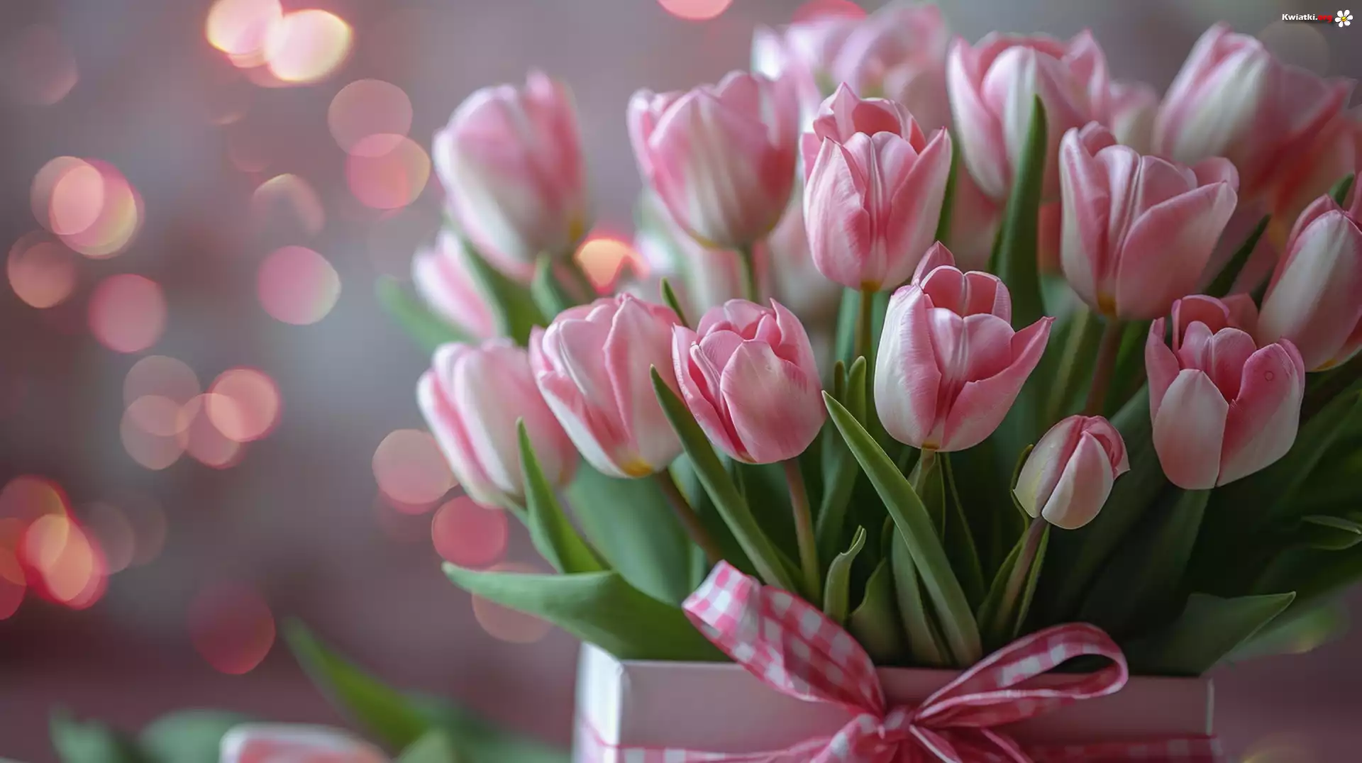 Różowe, Tulipany, Kokarda - Zdjęcia