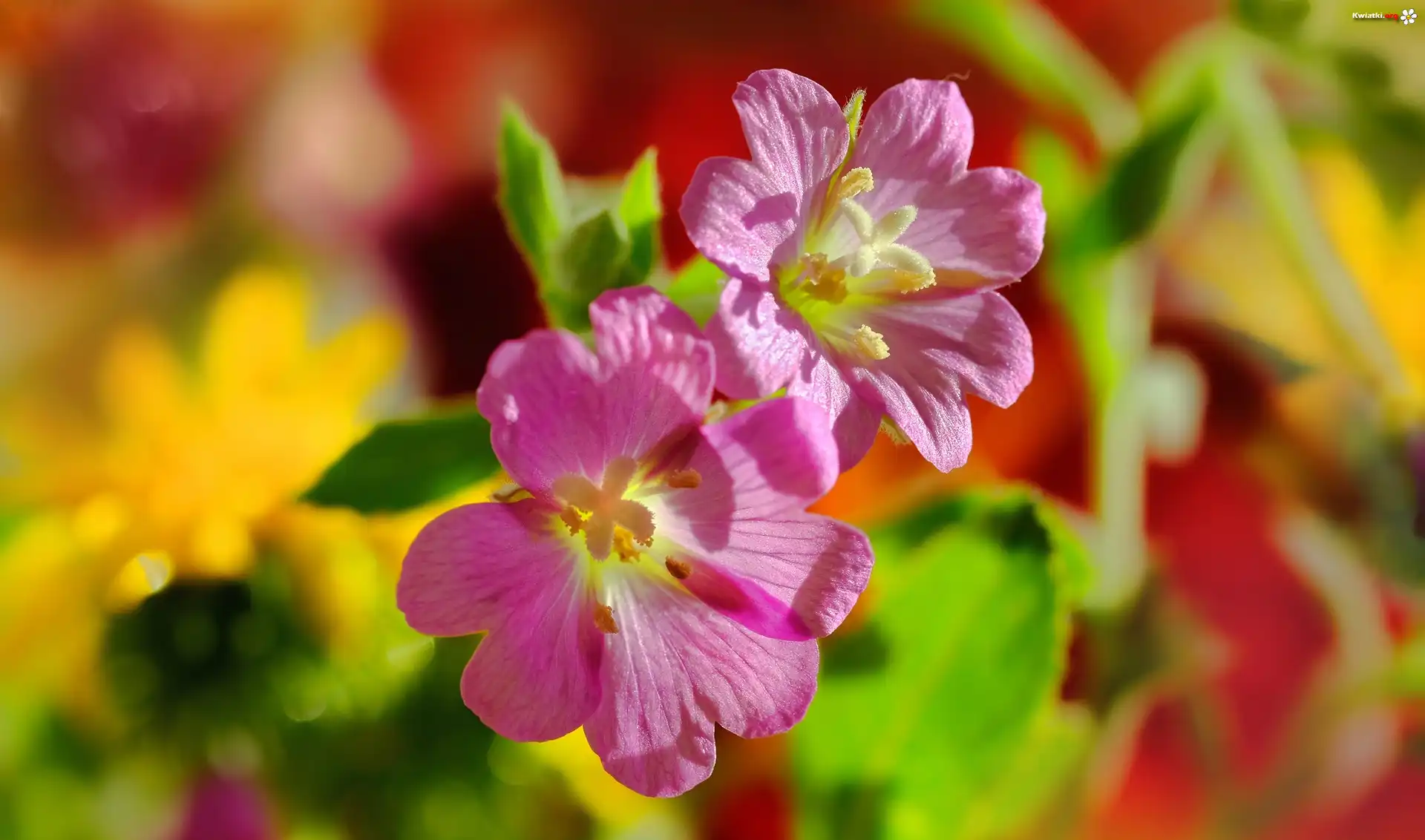 Różowe, Dwa, Kwiatki, Kolorowe, Tło - Zdjęcia