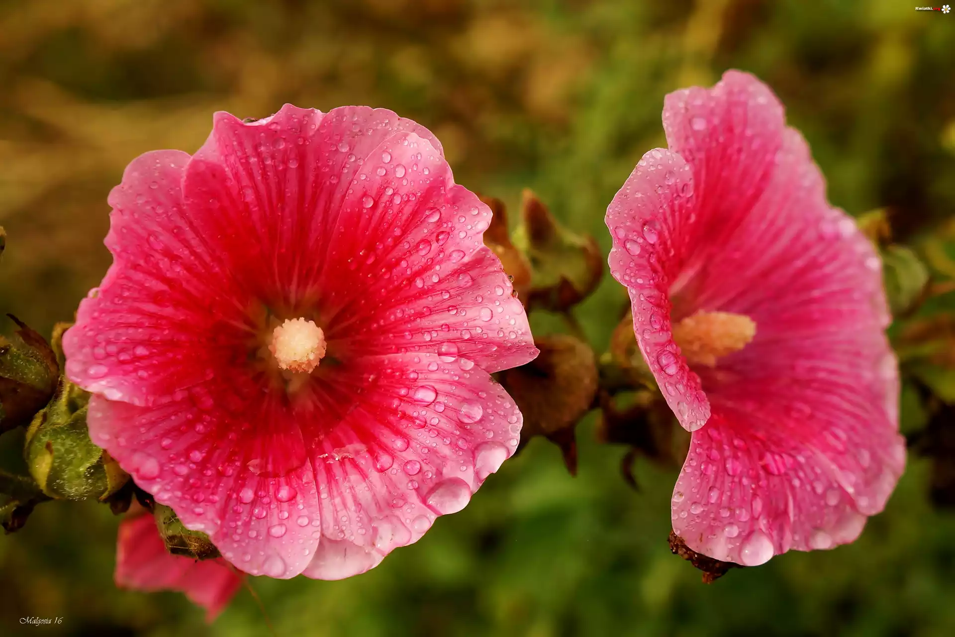 Różowe, Malwy, Krople, Rosa - Zdjęcia