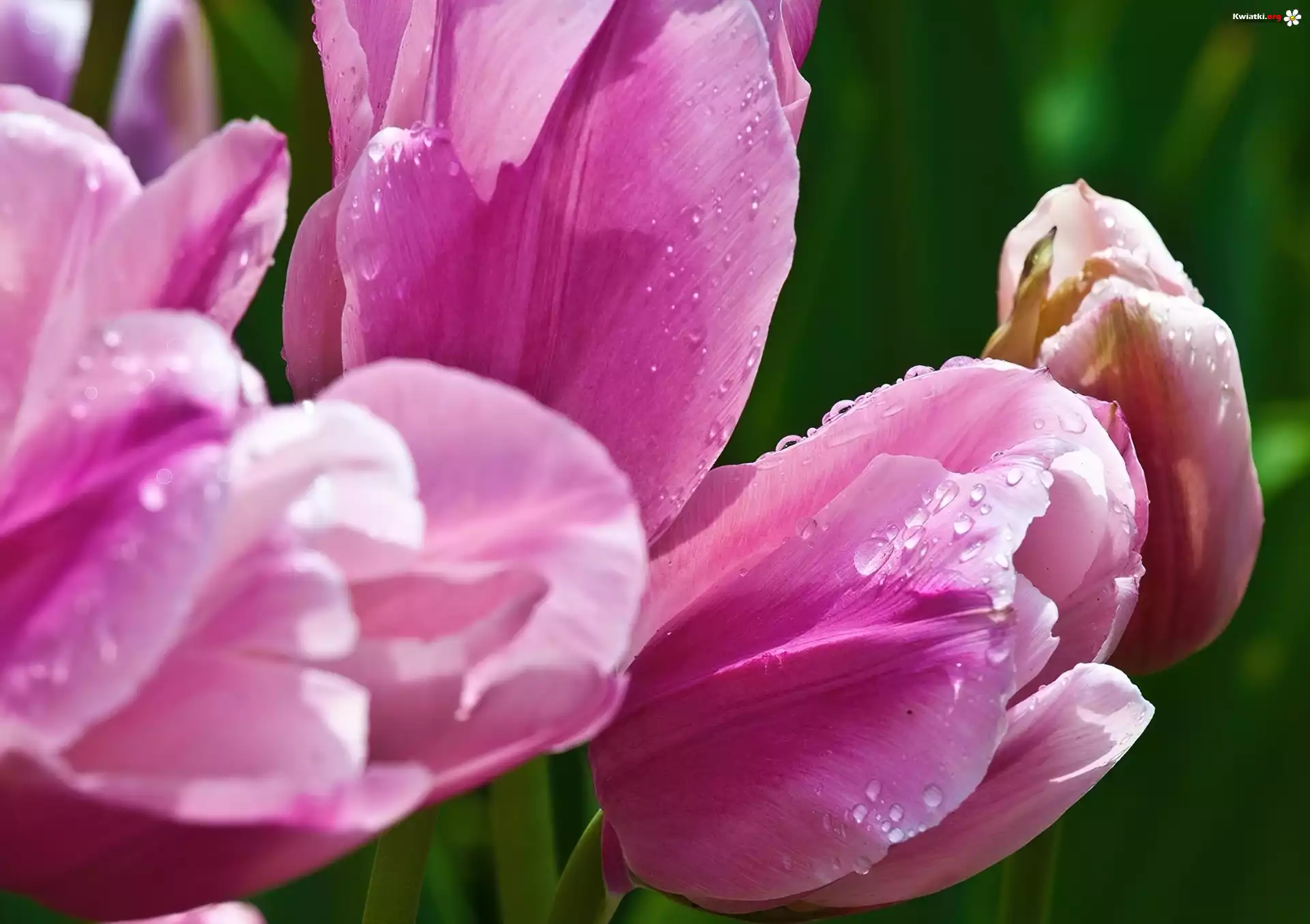 Kwiat Różowe, Tulipany, Krople, Rosy