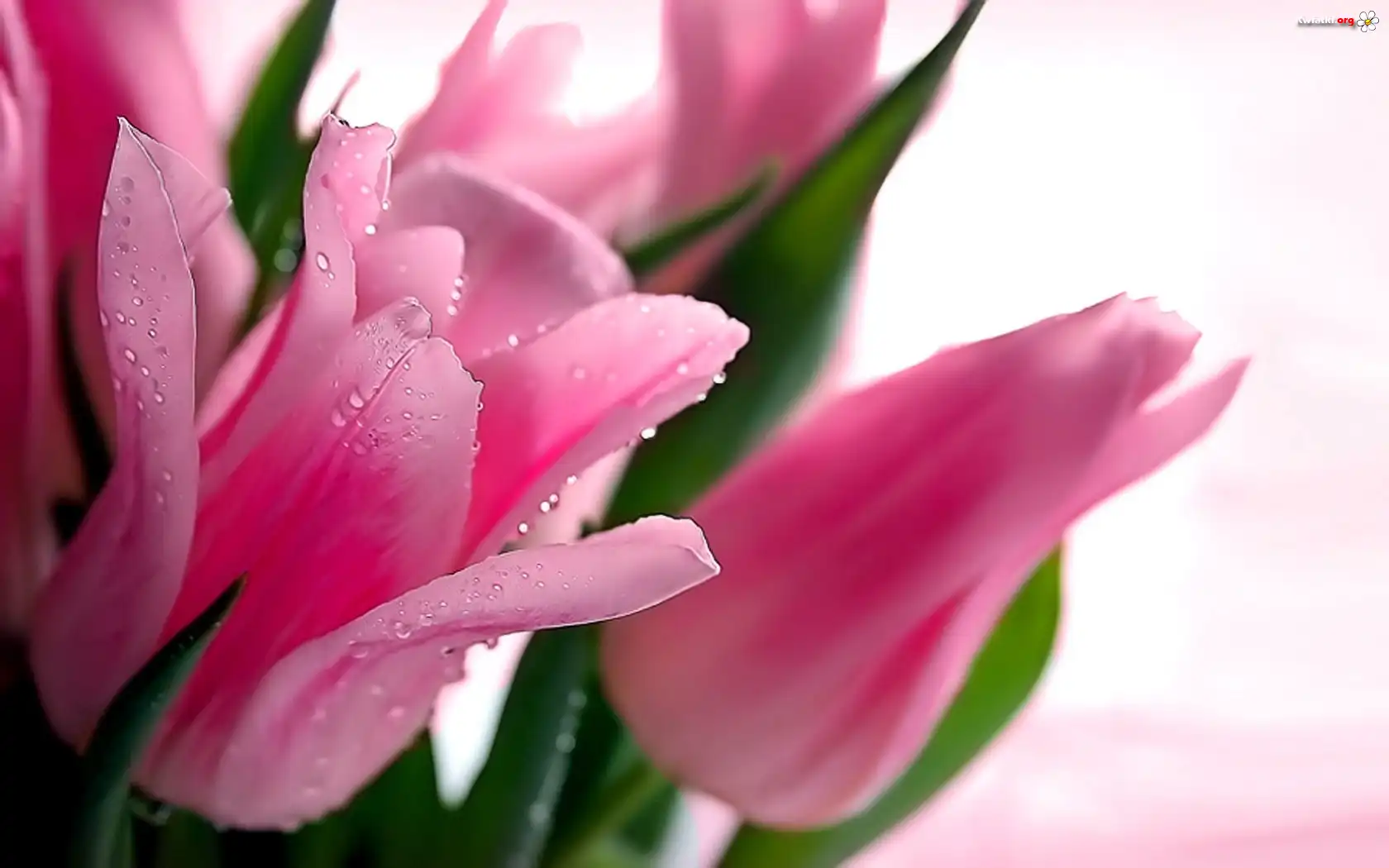 Kwiat Różowe, Tulipany, Krople, Wody