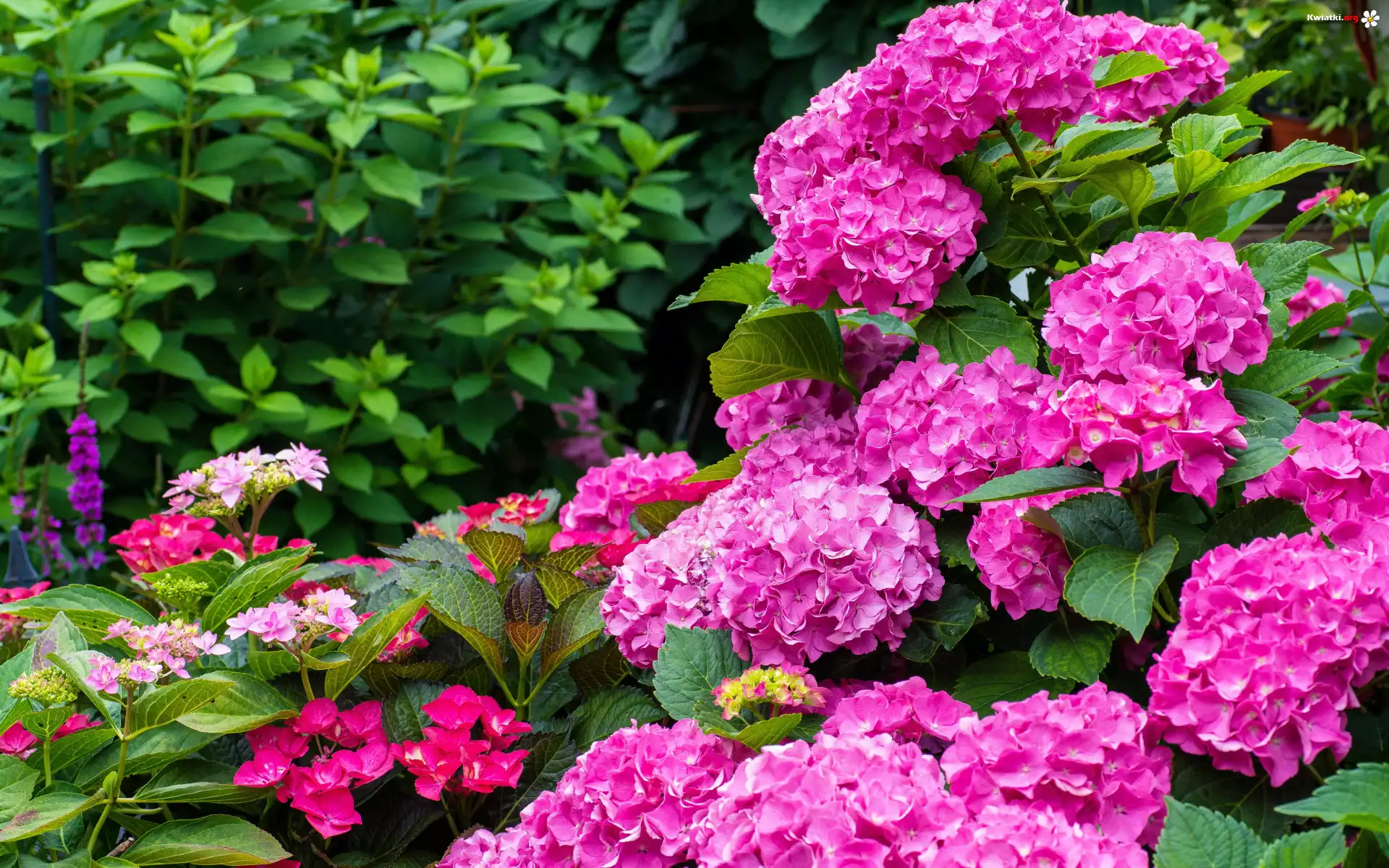 Różowe, Kwiaty, Hortensja, Krzew, Liście - Zdjęcia
