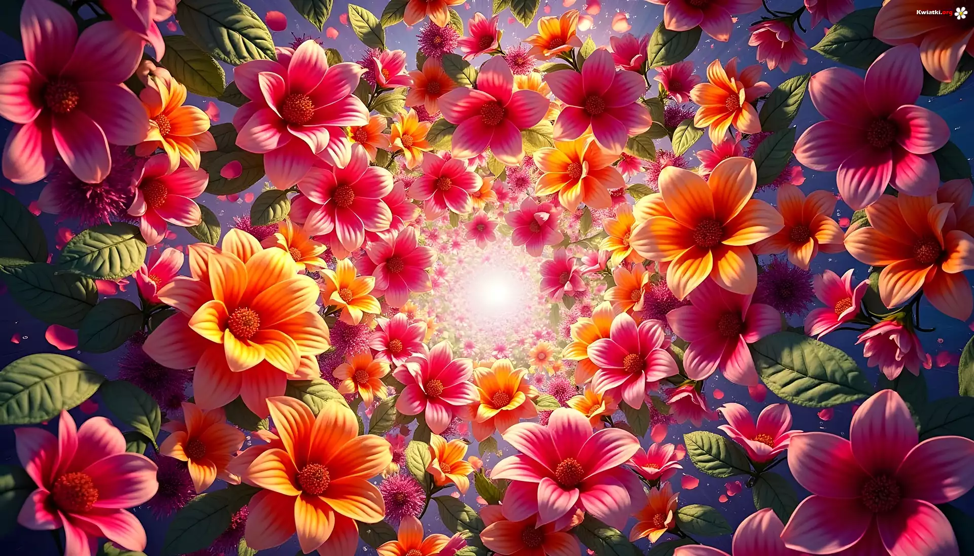 Pomarańczowe, Różowe, Kwiaty, Grafika AI - Zdjęcia