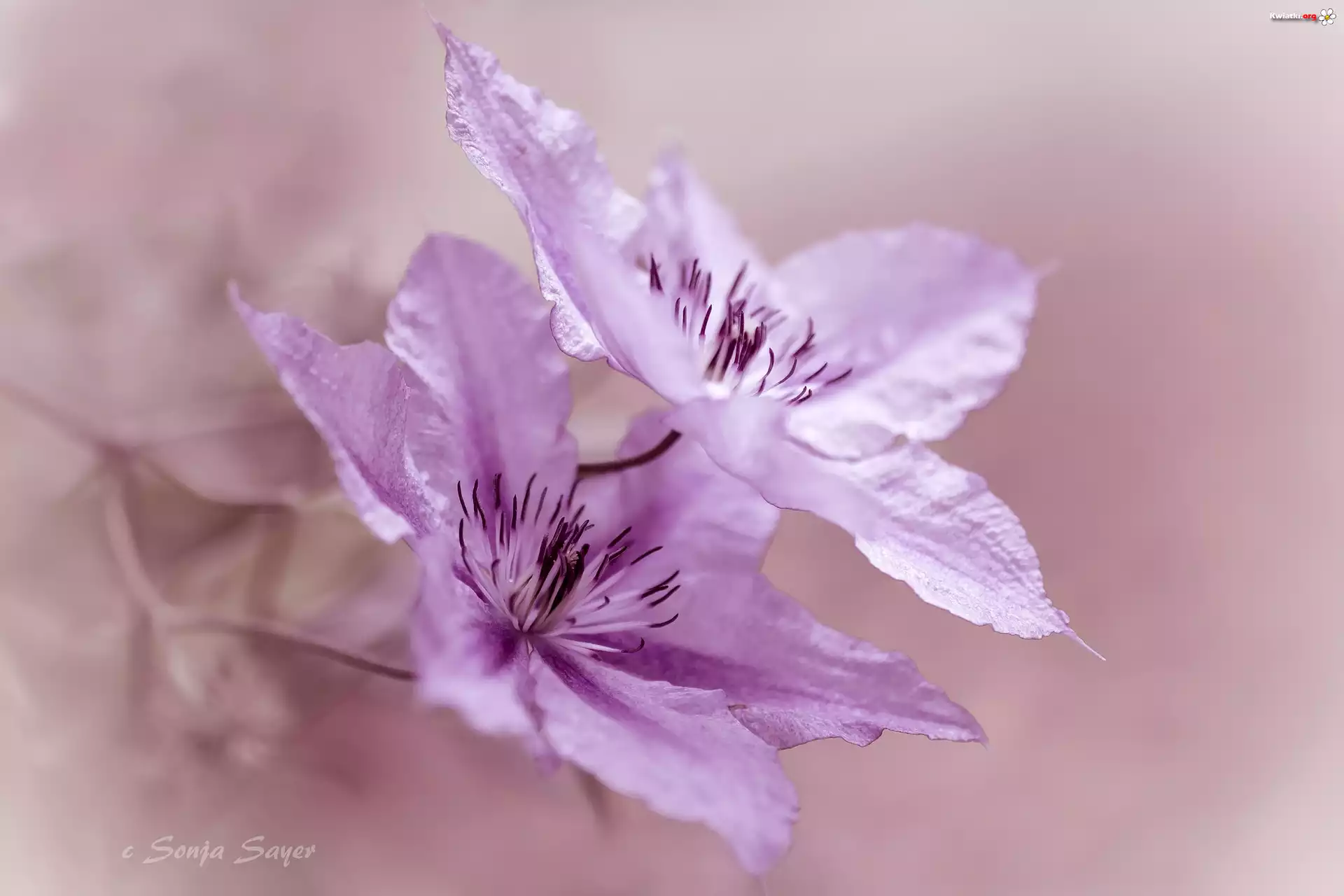 Różowe, Dwa, Kwiaty, Clematis, Powojnik - Zdjęcia