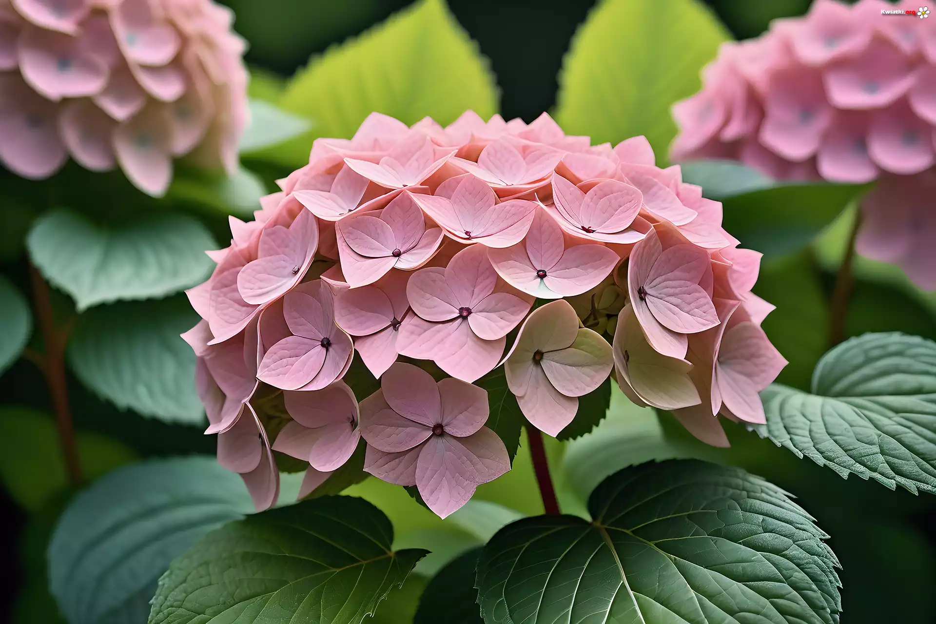 Hortensje, Różowe, Kwiaty, Liście, Grafika - Zdjęcia