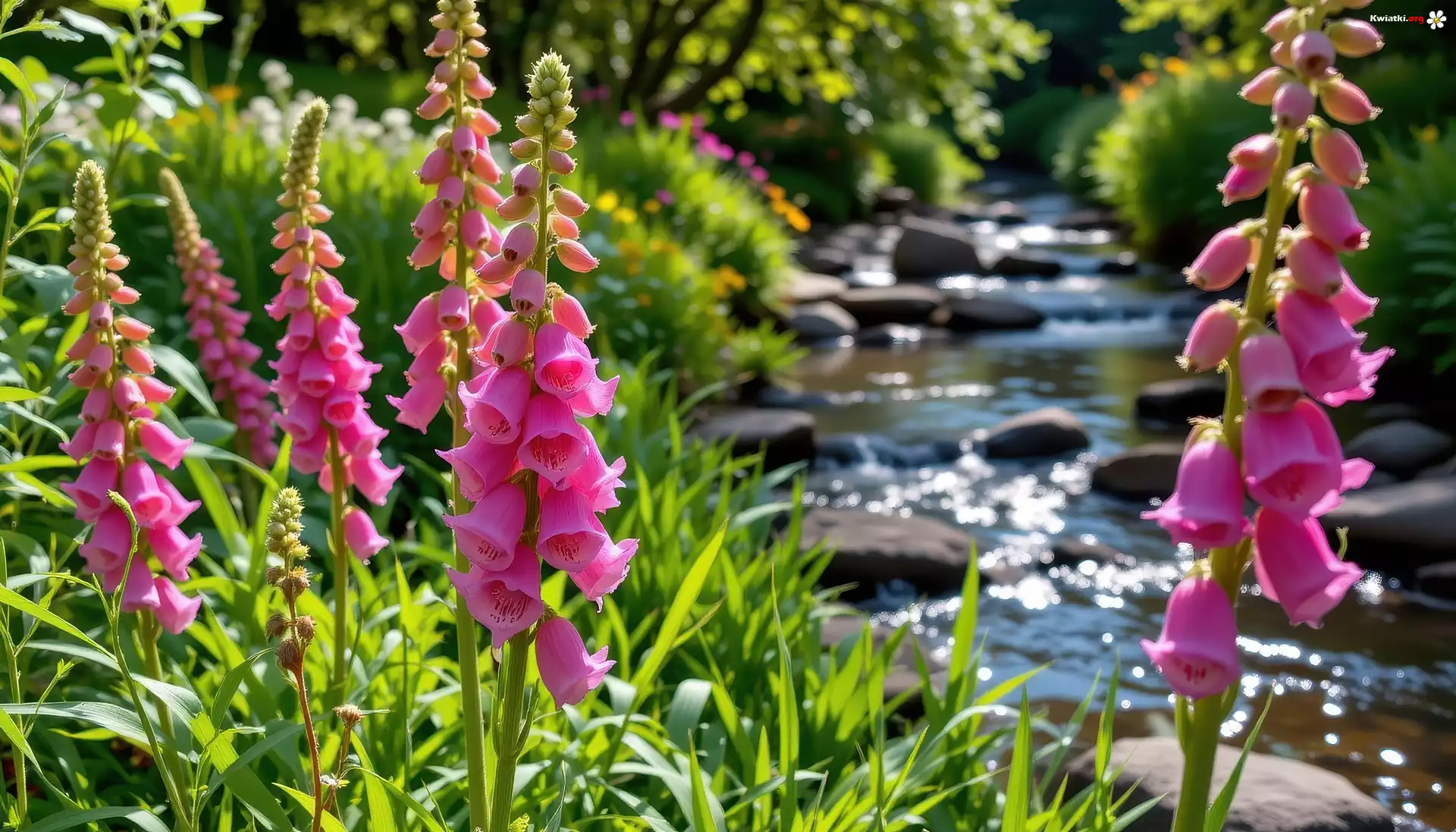 Naparstnica, Różowe, Kwiaty, Potok, Grafika - Zdjęcia