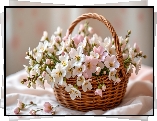 Białe, Różowe, Kwiaty, Wiklinowy, Koszyk - Zdjęcia