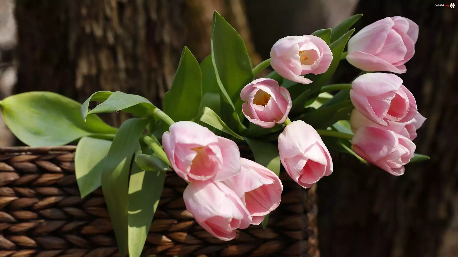 Kwiaty, Różowe, Tulipany, Bukiet, Koszyk, Rozmyte, Tło - Zdjęcia